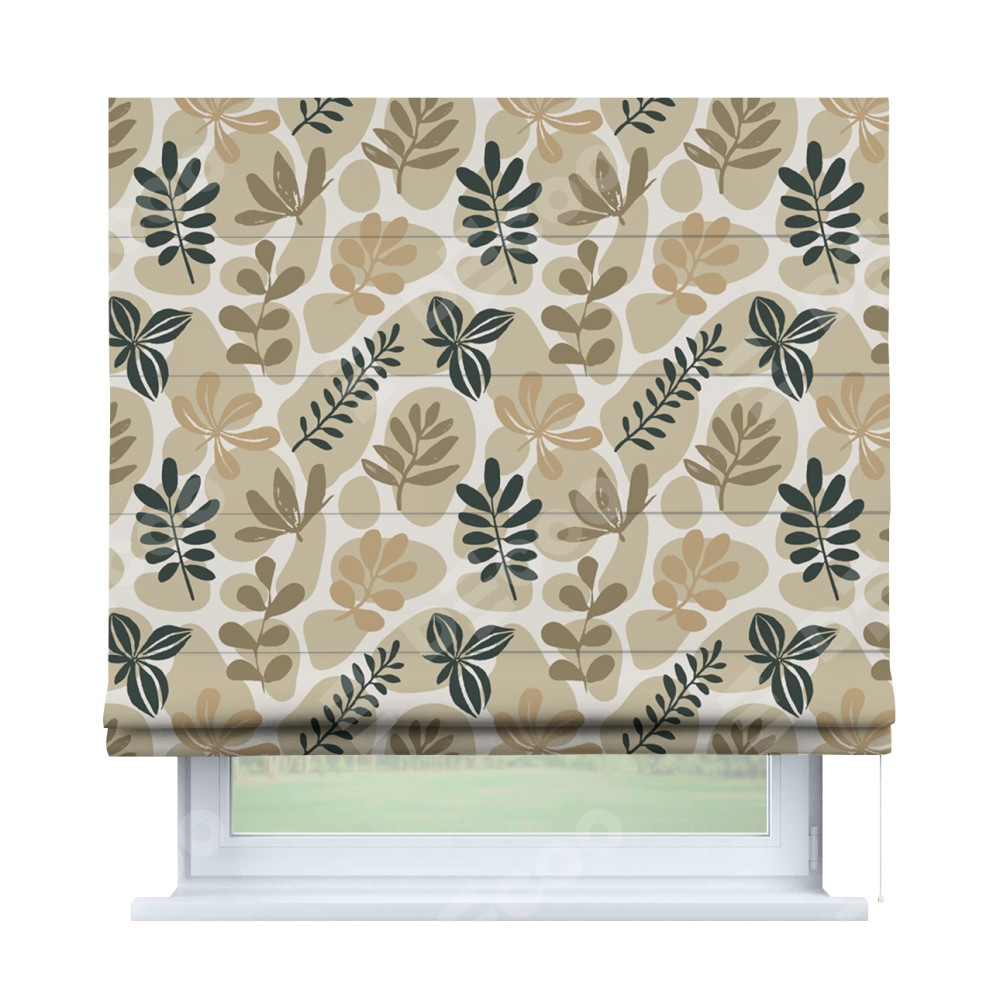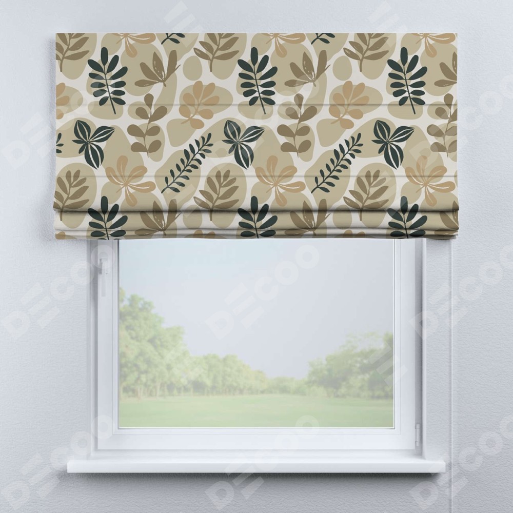 Римская штора производителя «Cortin», используется для проёма, пошита из ткани блэкаут с нанесением сублимационной печати «Бежевый сад». Имеет универсальный механизм и подходит для монтажа: на потолок, на стену и в нишу.