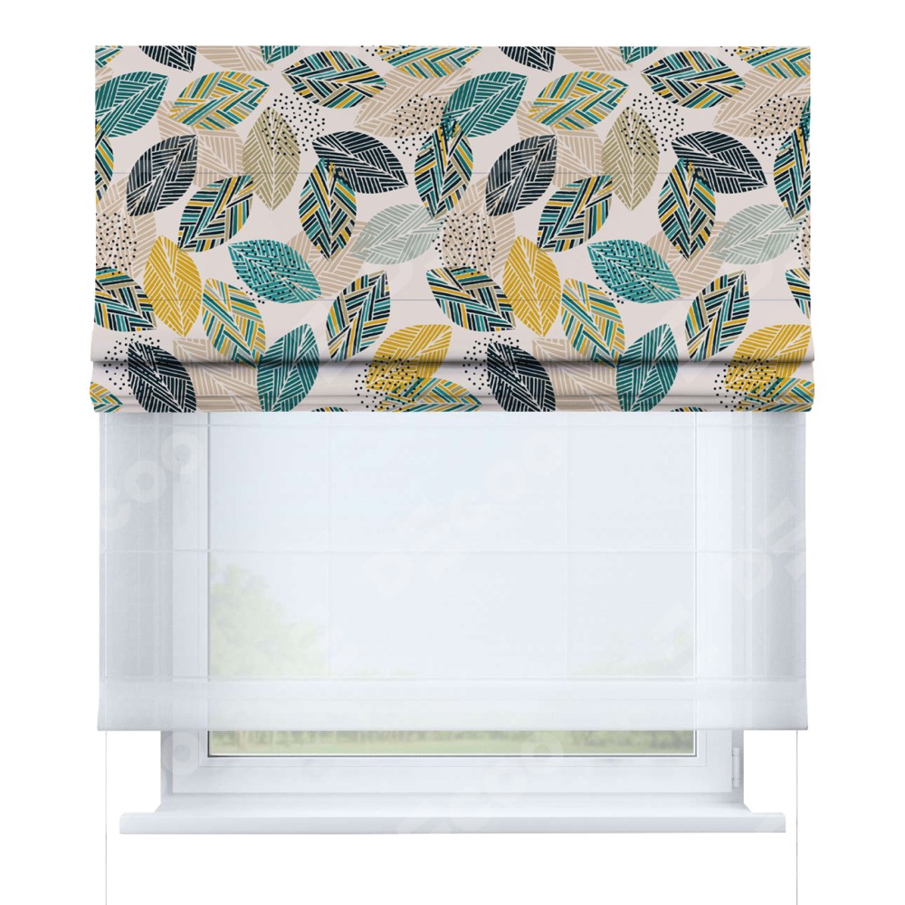 Римская штора «Кортин» день-ночь «Листья с орнаментом»