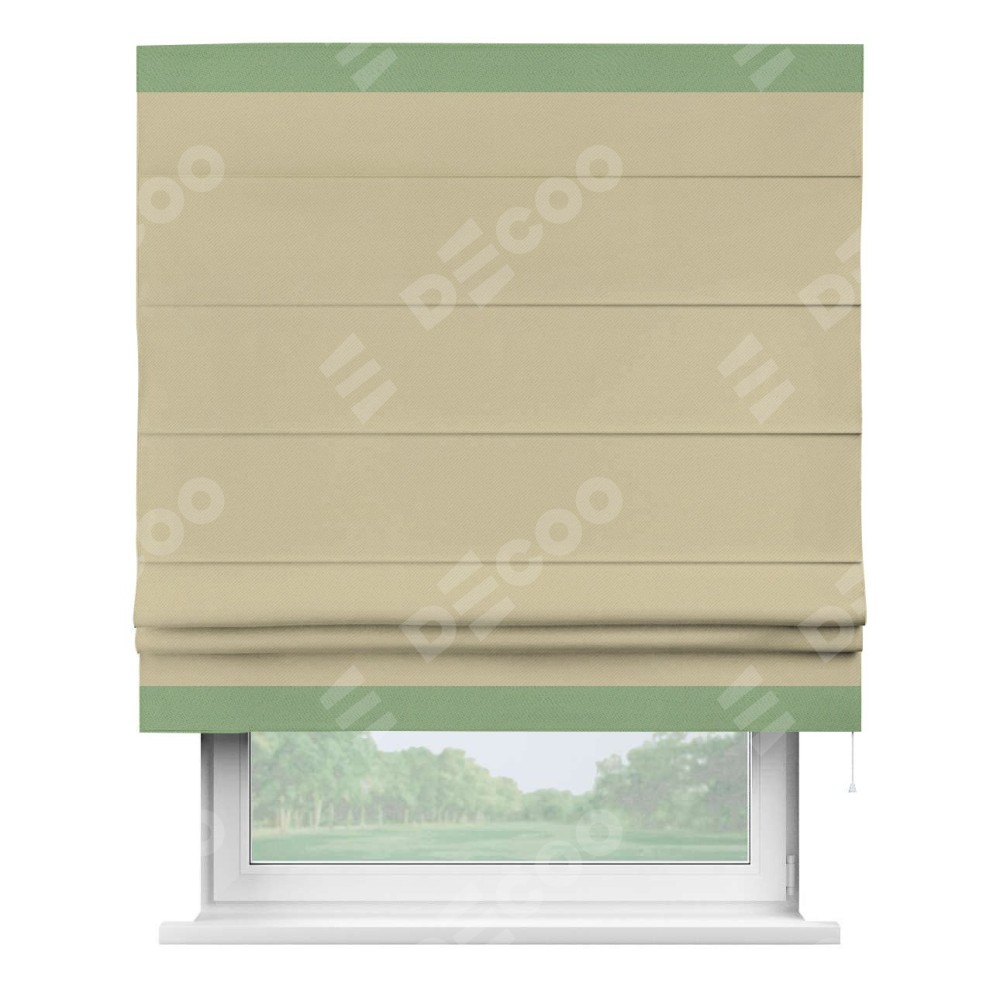 Римская штора производителя «Cortin», используется для проёма, пошита из ткани блэкаут однотонный кофейный, артикул ткани 13130. Отделка шторы кантом «Горизонт», ткань для канта используется из блэкаута однотонного разной расцветки на выбор. Имеет универсальный механизм и подходит для монтажа: на потолок, на стену и в нишу.