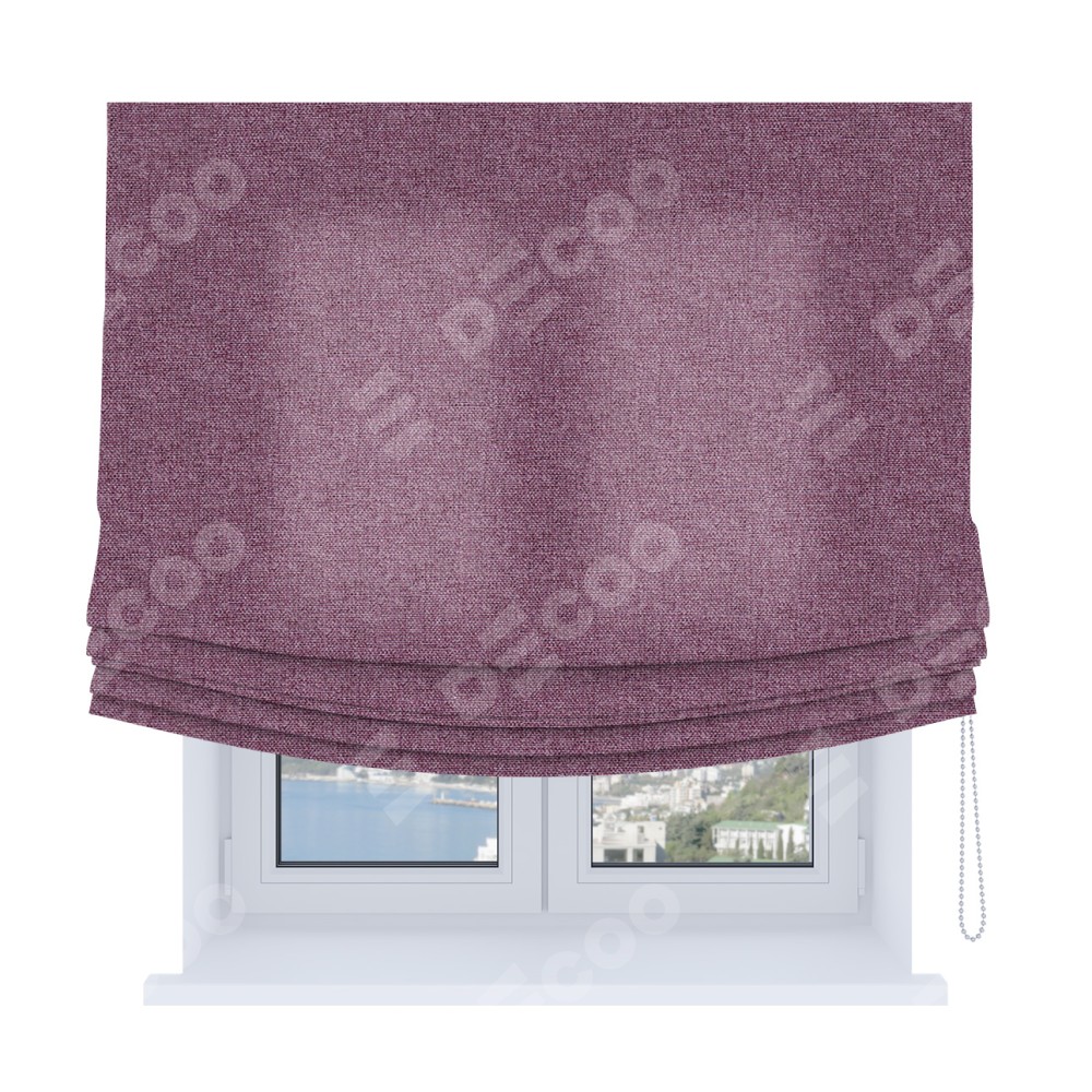 Римская штора Soft производителя «Cortin», используется для проёма, пошита из ткани лён кашемир сиреневый, артикул ткани 21620. Имеет универсальный механизм и подходит для монтажа: на потолок, на стену и в нишу. В отличие от стандартных римских штор, римская штора Soft не имеет горизонтальных вставок и нижнего отвеса. Это позволяет ткани произвольно драпироваться в свободные мягкие складки.