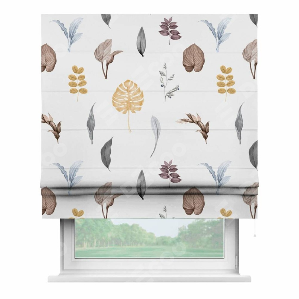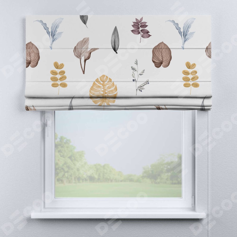 Римская штора производителя «Cortin», используется для проёма, пошита из ткани блэкаут с нанесением сублимационной печати «Осенний коллаж». Имеет универсальный механизм и подходит для монтажа: на потолок, на стену и в нишу.