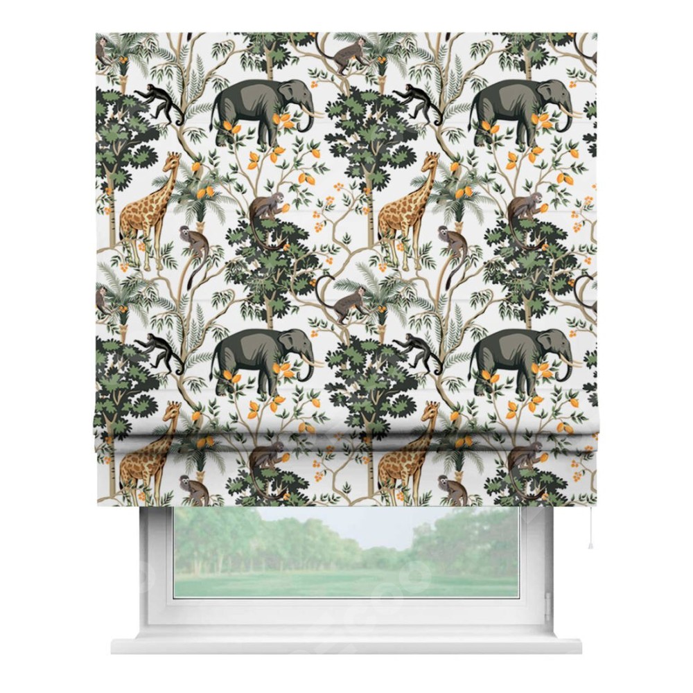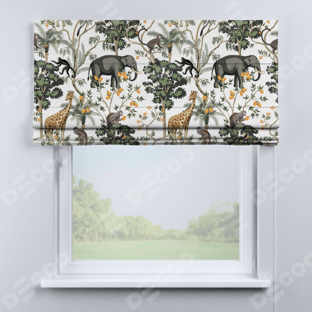 Римская штора производителя «Cortin», используется для проёма, пошита из ткани блэкаут с нанесением сублимационной печати «Африканские равнины». Имеет универсальный механизм и подходит для монтажа: на потолок, на стену и в нишу.