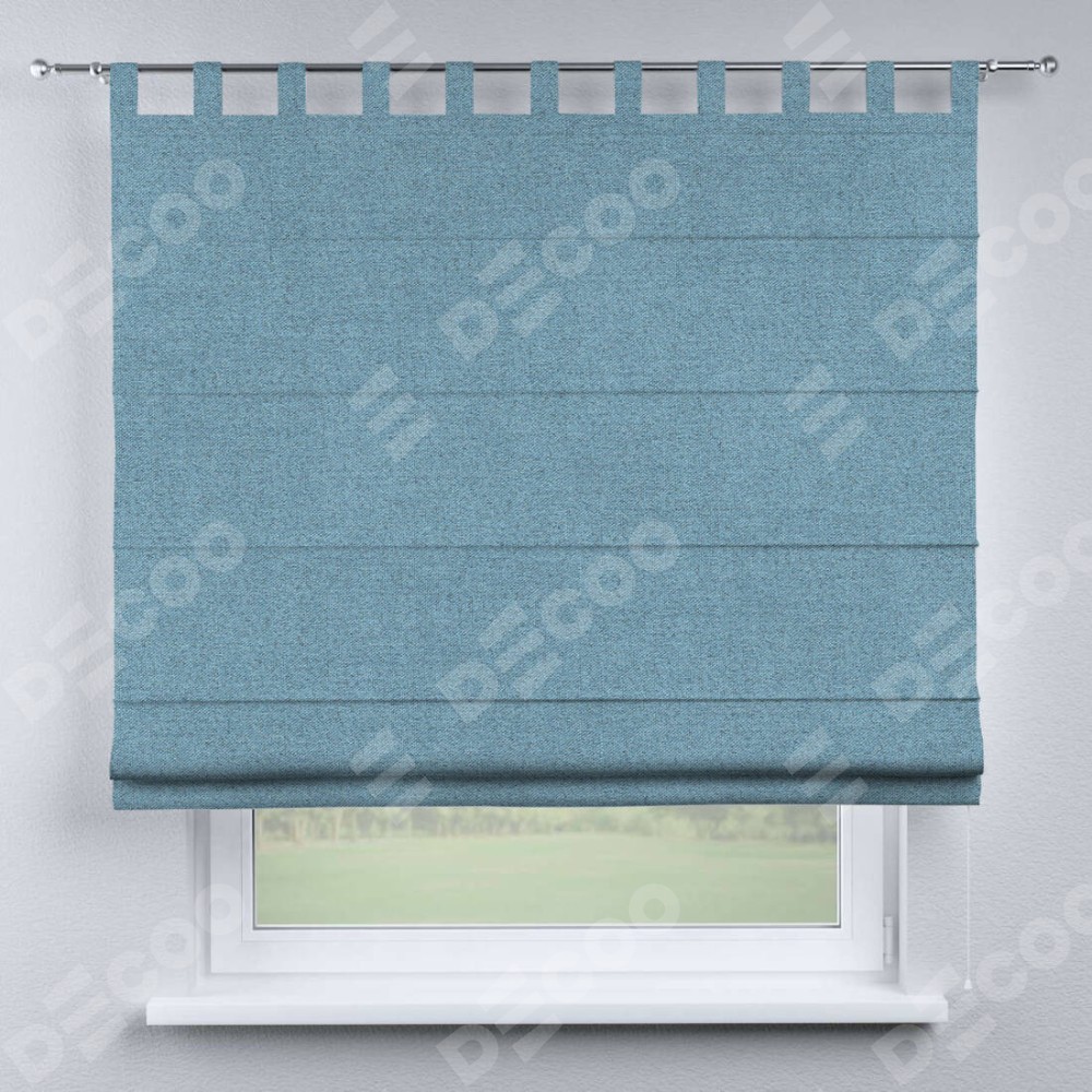 Римская штора производителя «Cortin», используется для проёма, пошита из ткани лён блэкаут голубой, артикул ткани 69574. Данная модель пошита на петлях, комплектуется на выбор круглым карнизом и подходит для монтажа на стену. Римская штора на петлях имеет простую систему регулировки высоты, отличительным преимуществом данной модели является простой способ монтажа. Достаточно повесить ее на трубу и штора готова!