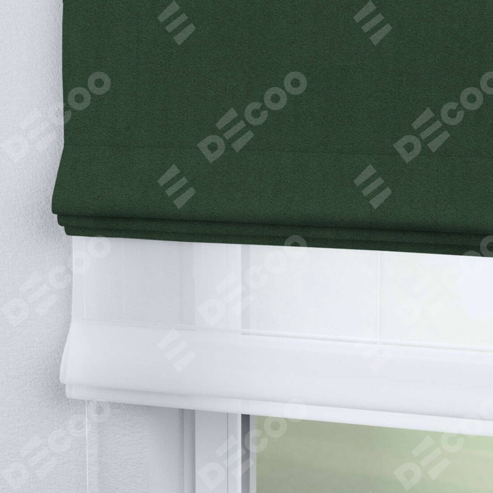 Римская штора день-ночь производителя «Cortin», используется для проёма, пошита из двух полотен, с лицевой стороны лён блэкаут зелёный артикул 69497, вторая ткань тюль (по стандарту комплектуется тюль белого цвета артикул V-01). Имеет универсальный механизм и подходит для монтажа: на потолок, на стену и в нишу.