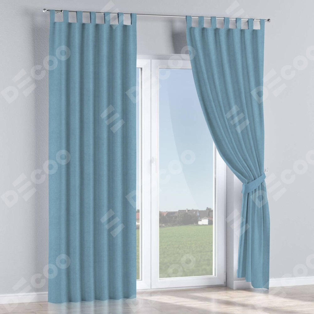 Комплект прямых штор, от производителя «Cortin», пошиты из ткани лён блэкаут голубой, артикул ткани 69574. Данная модель пошита на петлях, комплектуется на выбор круглым карнизом и подходит для монтажа на стену или потолок. Прямые шторы на петлях шьются по стандарту с коэффициентом 1/2 (на 100 см. ширины проёма 200 см. ширины ткани), отличительным преимуществом данной модели является простой способ монтажа. Достаточно повесить ее на трубу и штора готова!