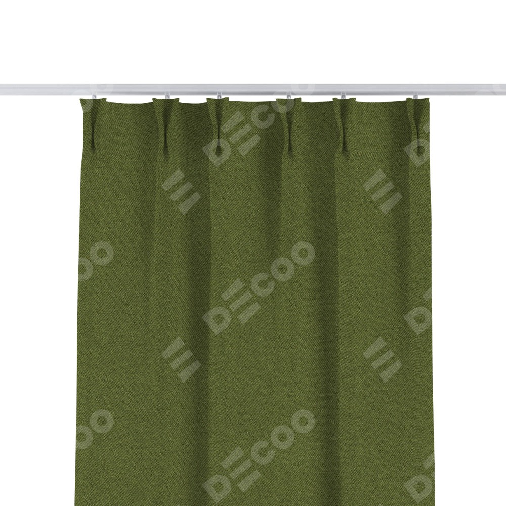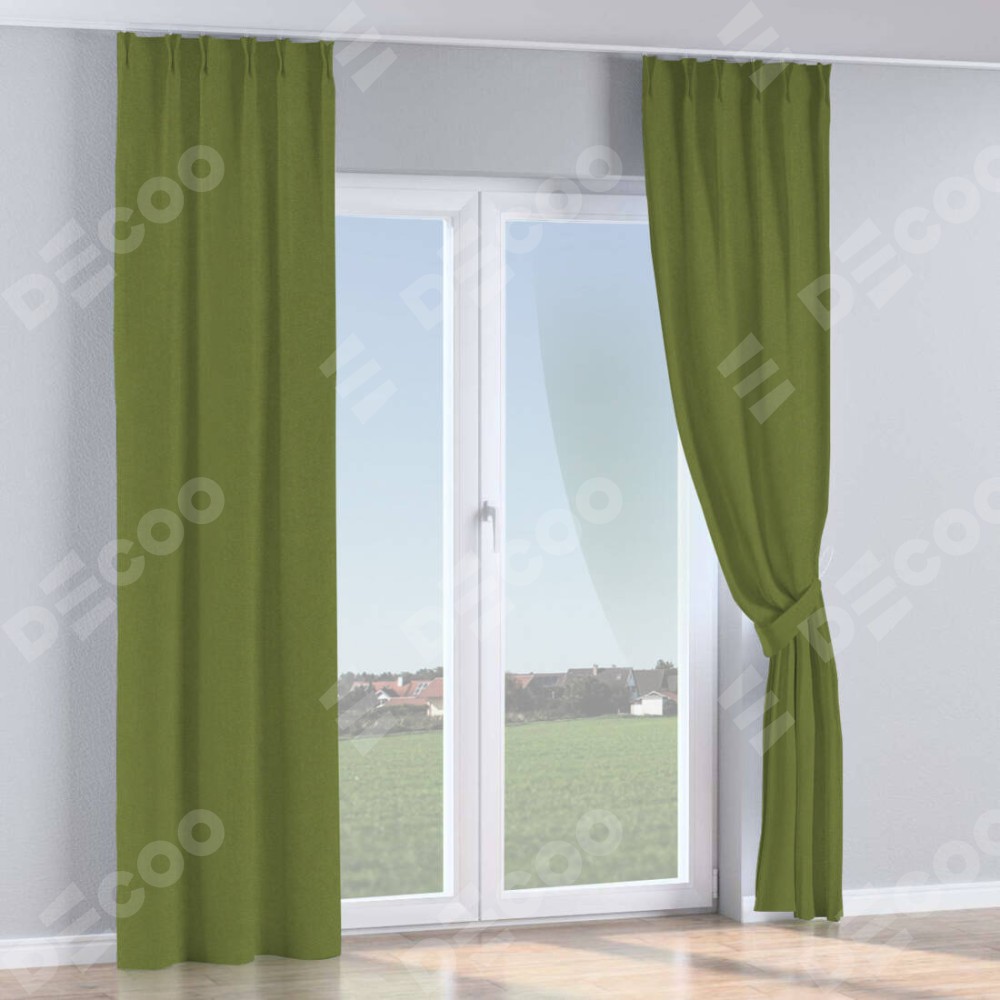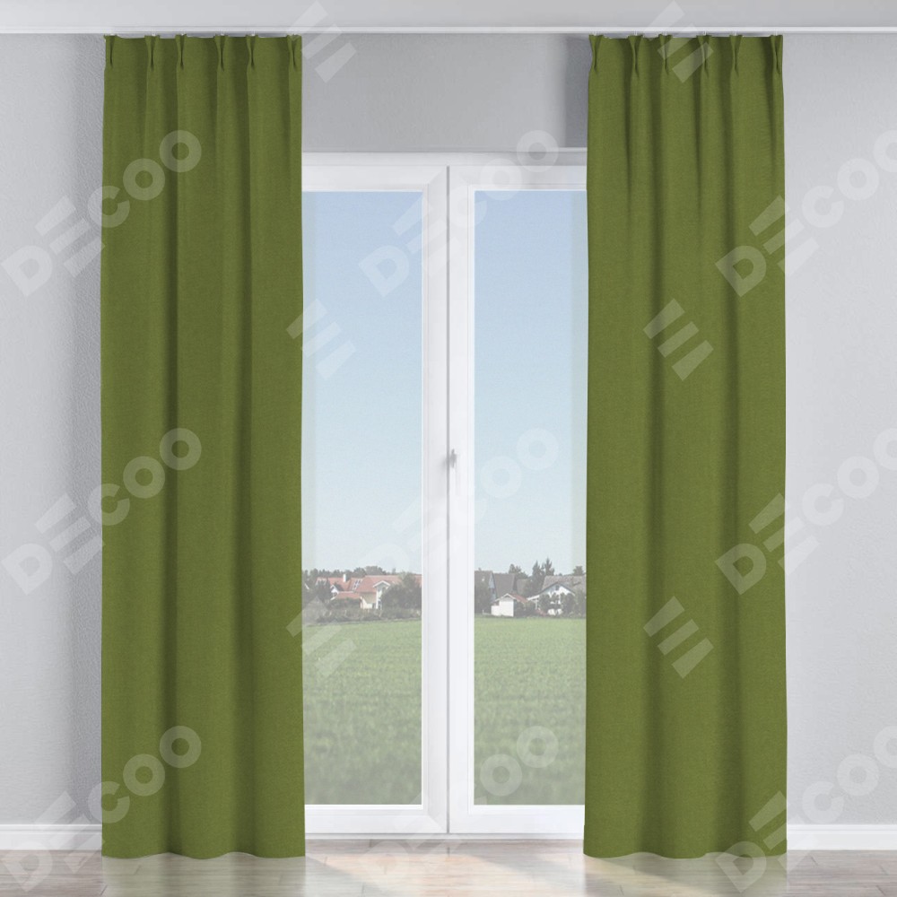 Комплект прямых штор, от производителя «Cortin», пошиты из ткани лён блэкаут оливковый, артикул ткани 69516. С изнаночной стороны в верхней части штор пристрачивается шторная лента с декоративными складками «Кустик». Для создания элегантных складок прямые шторы шьются по стандарту с коэффициентом 1:2 (на 100 см. ширины проёма 200 см. ширины ткани).