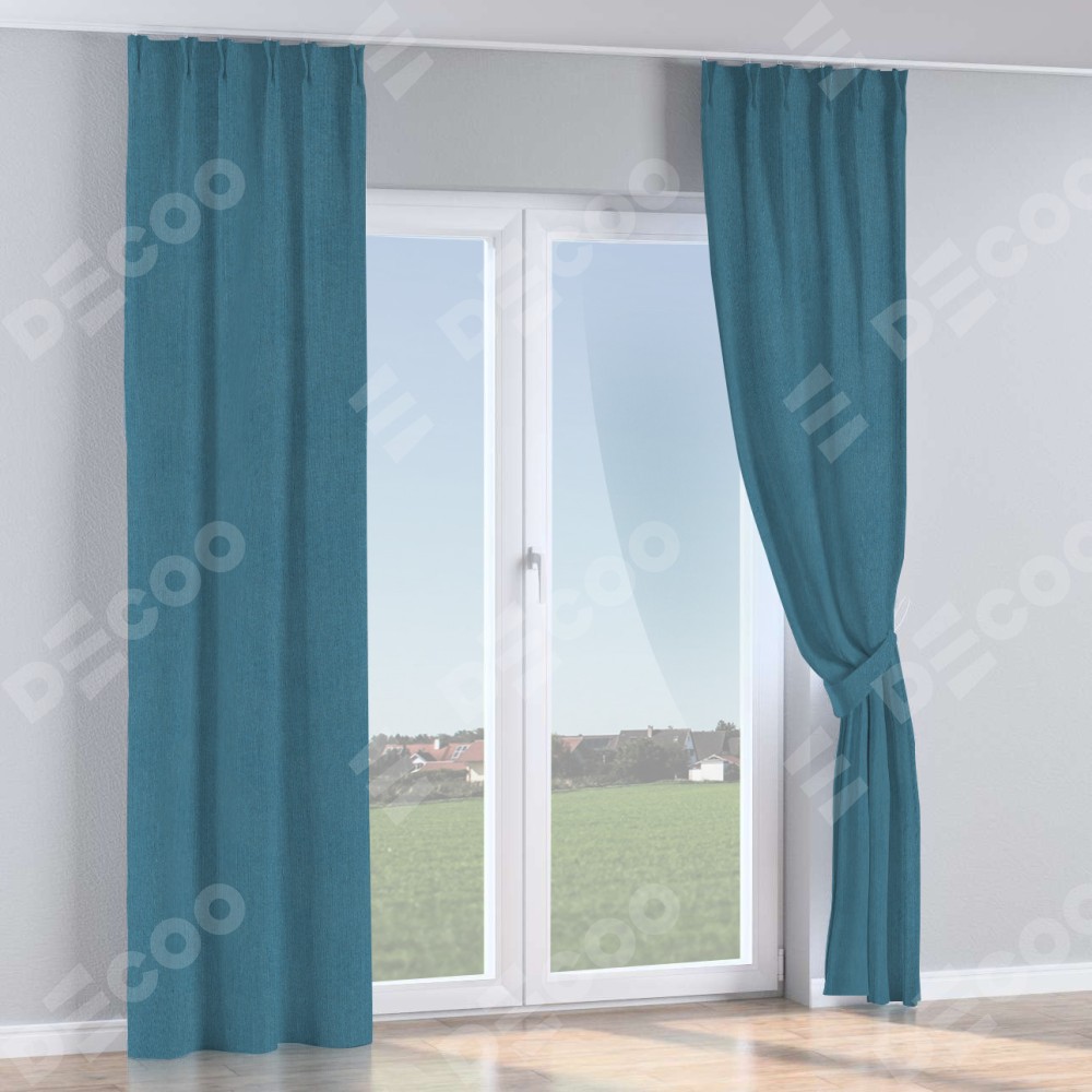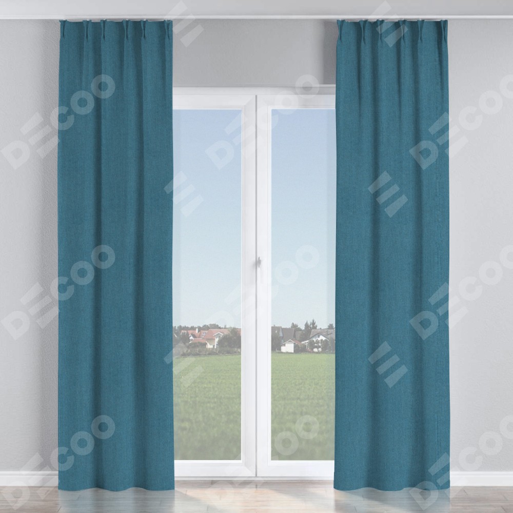 Комплект прямых штор, от производителя «Cortin», пошиты из ткани лён блэкаут синий, артикул ткани 69528. С изнаночной стороны в верхней части штор пристрачивается шторная лента с декоративными складками «Кустик». Для создания элегантных складок прямые шторы шьются по стандарту с коэффициентом 1:2 (на 100 см. ширины проёма 200 см. ширины ткани).
