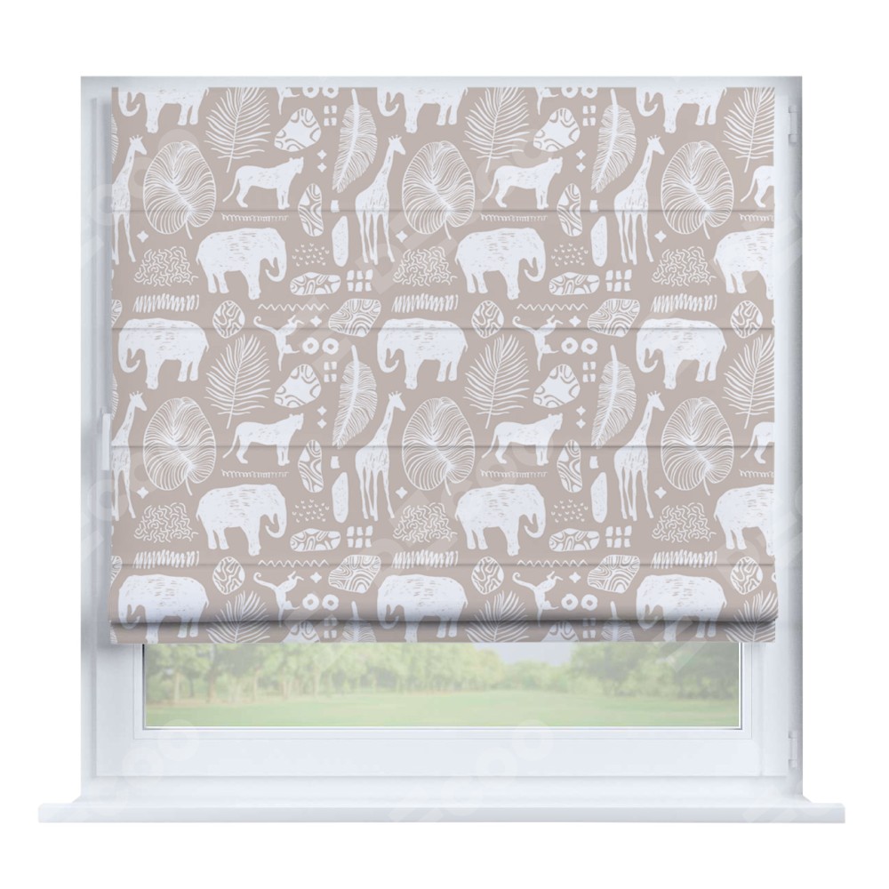 Римская штора производителя «Cortin», устанавливается на створку окна, пошита из ткани блэкаут с нанесением сублимационной печати «Африканские животные». Штора шьётся по индивидуальным размерам, для данного типа римской шторы возможная ширина от 35 до 150 см., высота до 250 см.