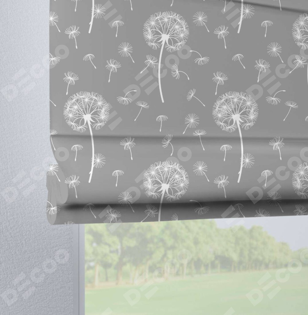 Римская штора производителя «Cortin», используется для проёма, пошита из ткани блэкаут с нанесением сублимационной печати «Одуванчики». Данная модель пошита на петлях, комплектуется на выбор круглым карнизом и подходит для монтажа на стену. Римская штора на петлях имеет простую систему регулировки высоты, отличительным преимуществом данной модели является простой способ монтажа. Достаточно повесить ее на трубу и штора готова!