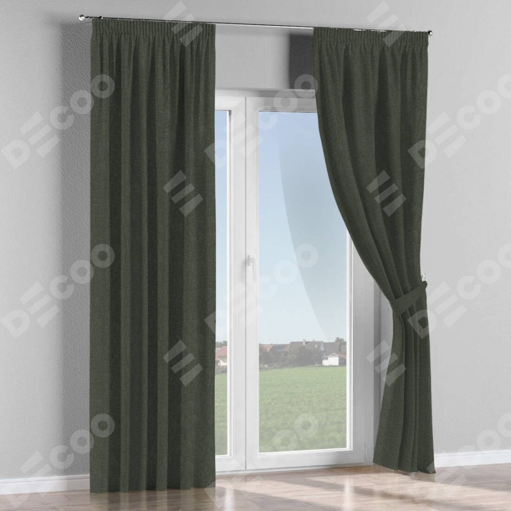 Комплект штор на тесьме «Карандаш», лён димаут графитово-серый