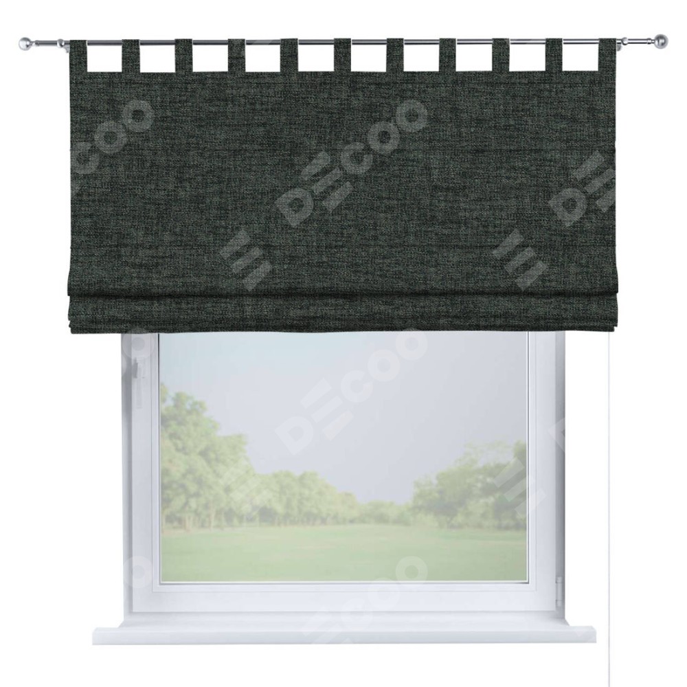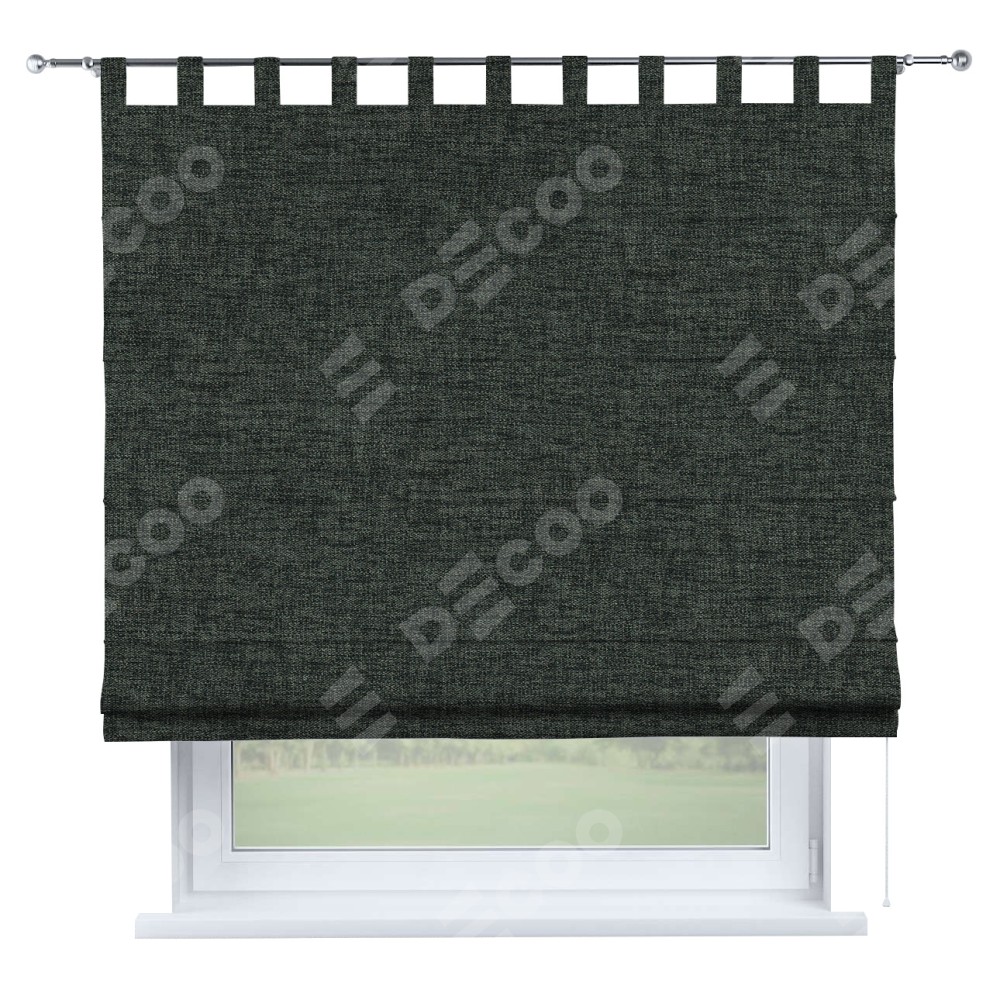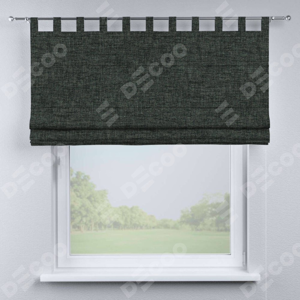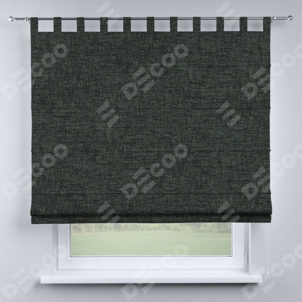 Римская штора производителя «Cortin», используется для проёма, пошита из ткани рогожка димаут графит, артикул ткани 102−34. Данная модель пошита на петлях, комплектуется на выбор круглым карнизом и подходит для монтажа на стену. Римская штора на петлях имеет простую систему регулировки высоты, отличительным преимуществом данной модели является простой способ монтажа. Достаточно повесить ее на трубу и штора готова!