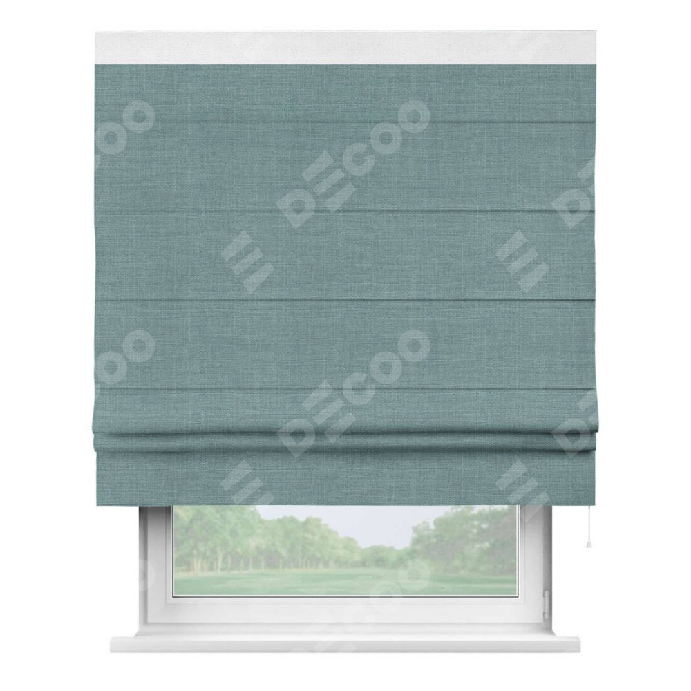 Римская штора «Кортин» с отделкой кантом Кинг, для проема, ткань лён голубой