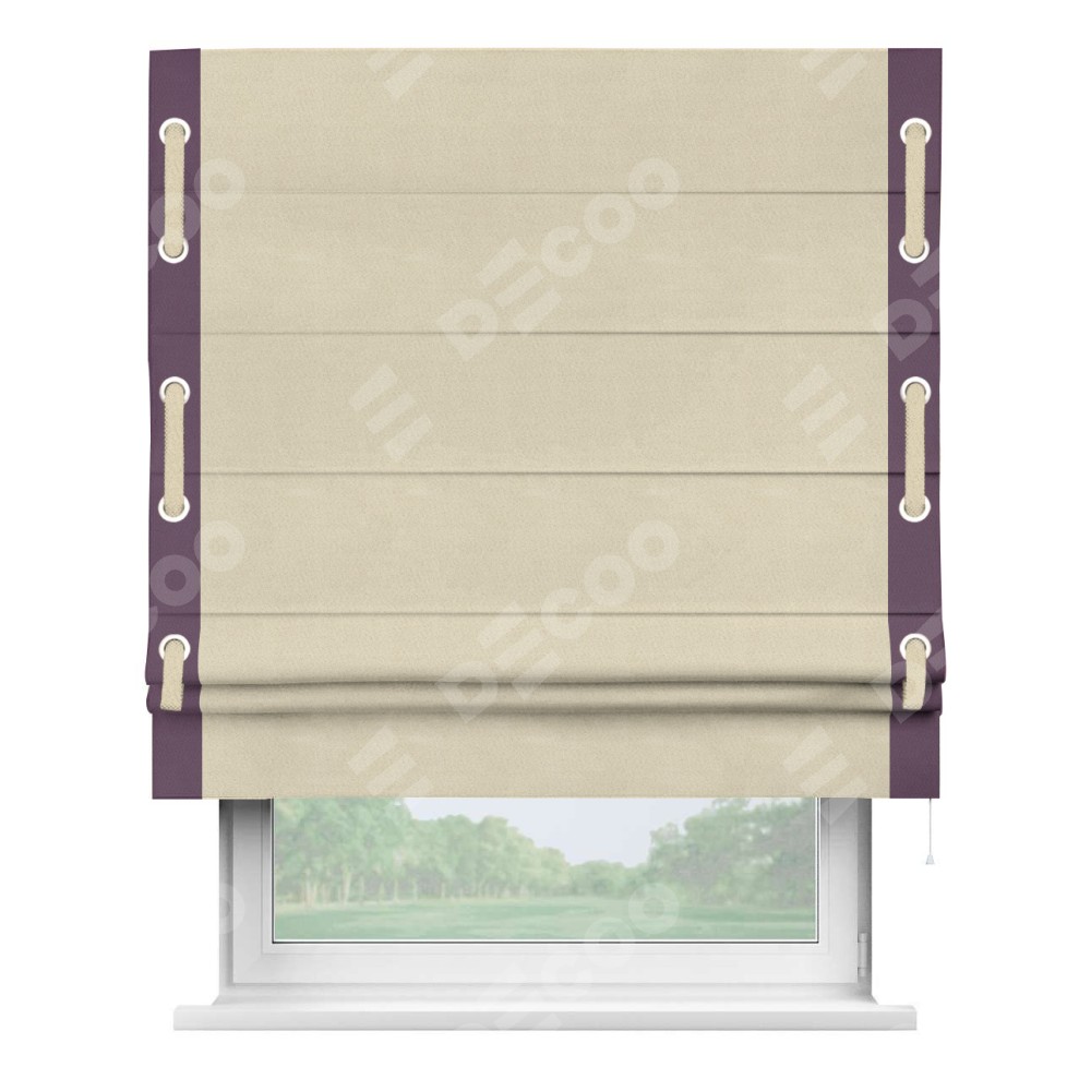 Римская штора «Кортин» с кантом Стрим Дуо (люверсы с пояском), для проема, ткань блэкаут однотонный цвет бежевый