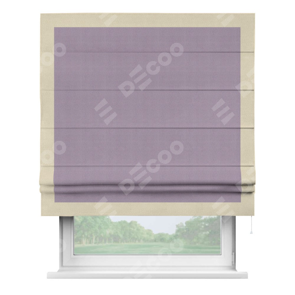 Римская штора «Кортин» с кантом Чесс, для проема, ткань блэкаут однотонный светло-сиреневый