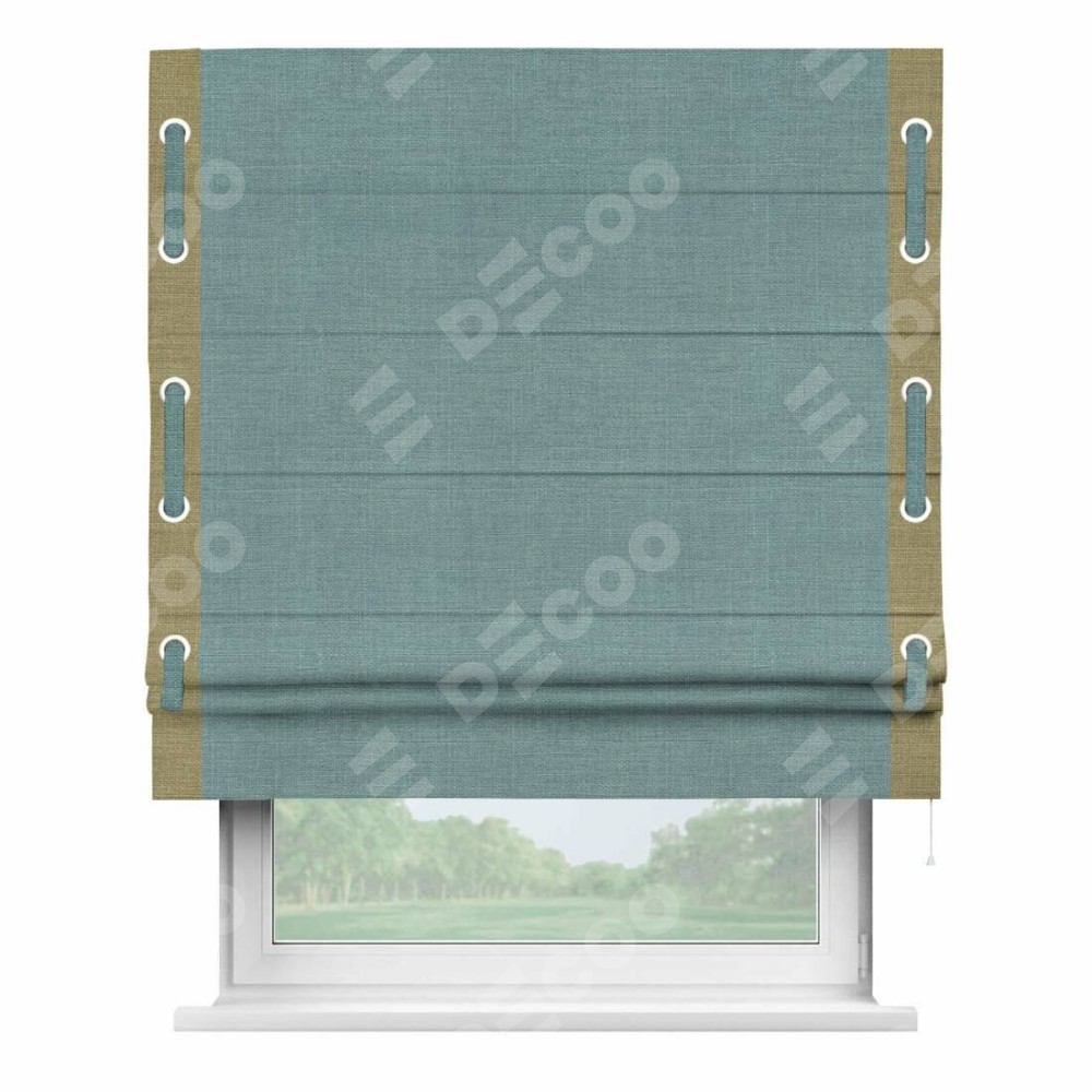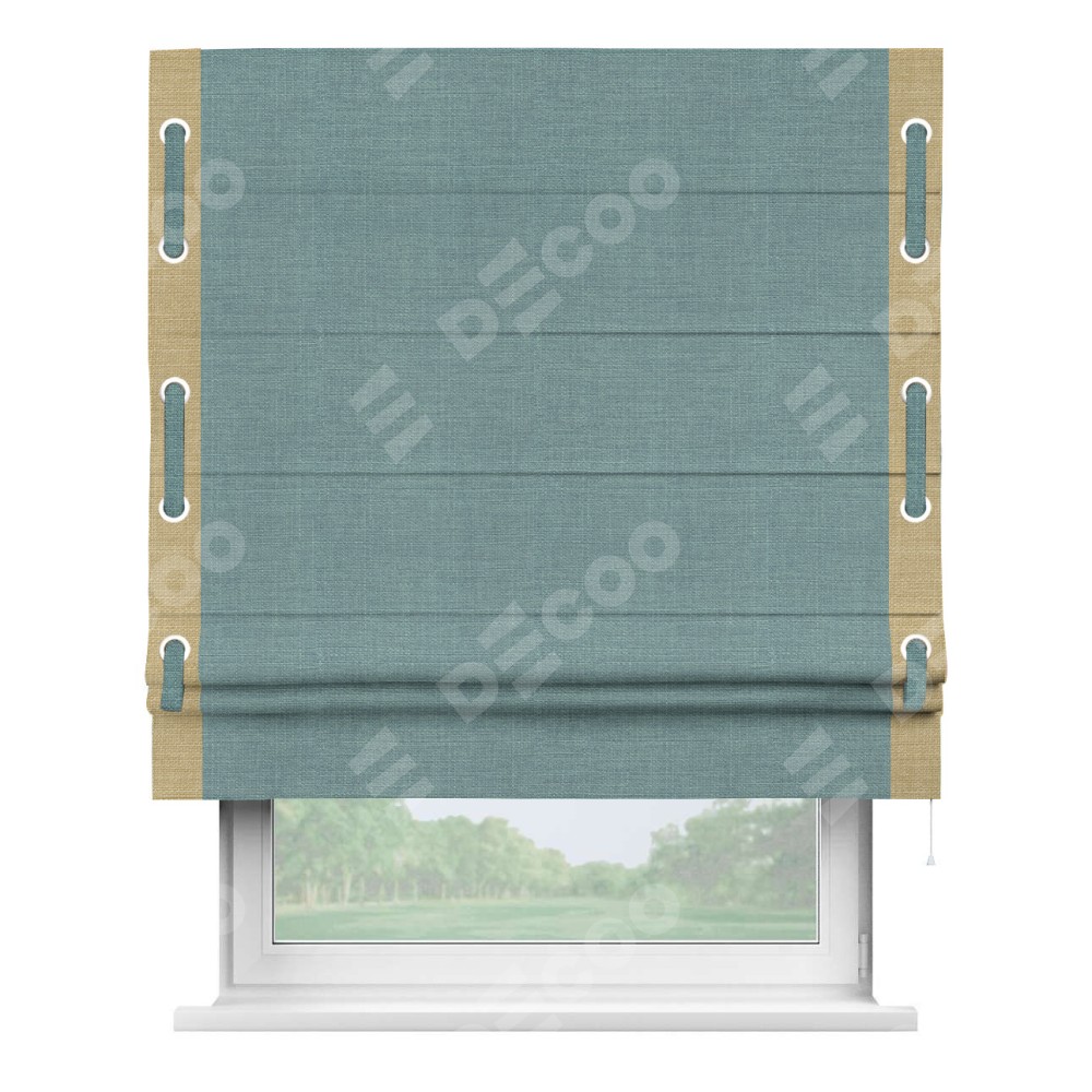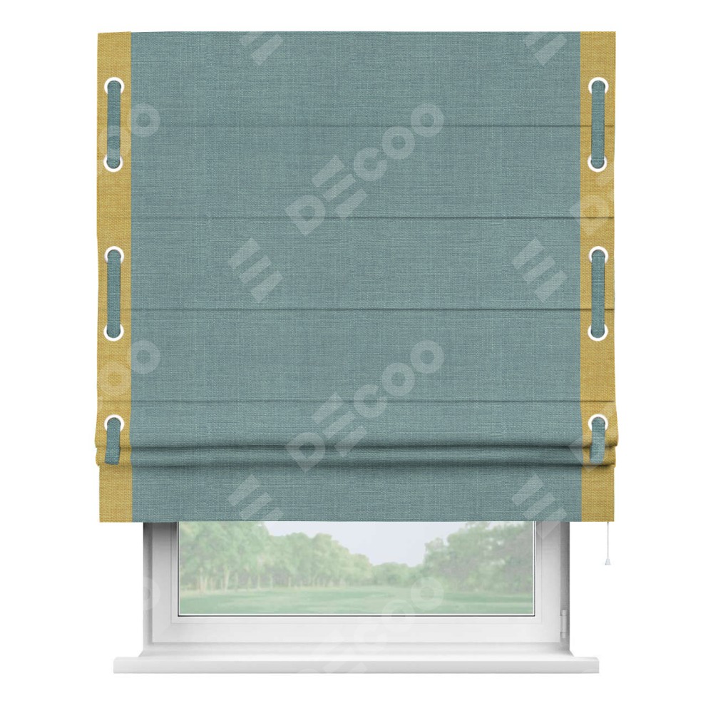 Римская штора «Кортин» с кантом Стрим Дуо, для проема, ткань лён, цвет голубой