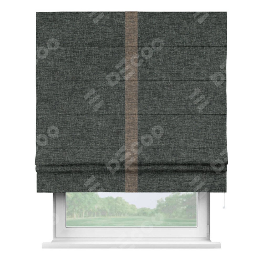 Римская штора «Кортин» с кантом Хайвэй, для проема, ткань рогожка димаут, графит