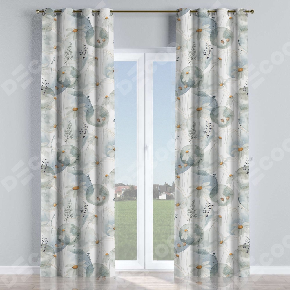 Комплект прямых штор, от производителя «Cortin», пошиты из ткани блэкаут с нанесением сублимационной печати «Ромашки акварель». Данная модель пошита на люверсах, комплектуется на выбор круглым карнизом и подходит для монтажа на стену или потолок. Прямые шторы на люверсах шьются по стандарту с коэффициентом 1/2 (на 100 см. ширины проёма 200 см. ширины ткани), отличительным преимуществом данной модели является простой способ монтажа. Достаточно повесить ее на трубу и штора готова!