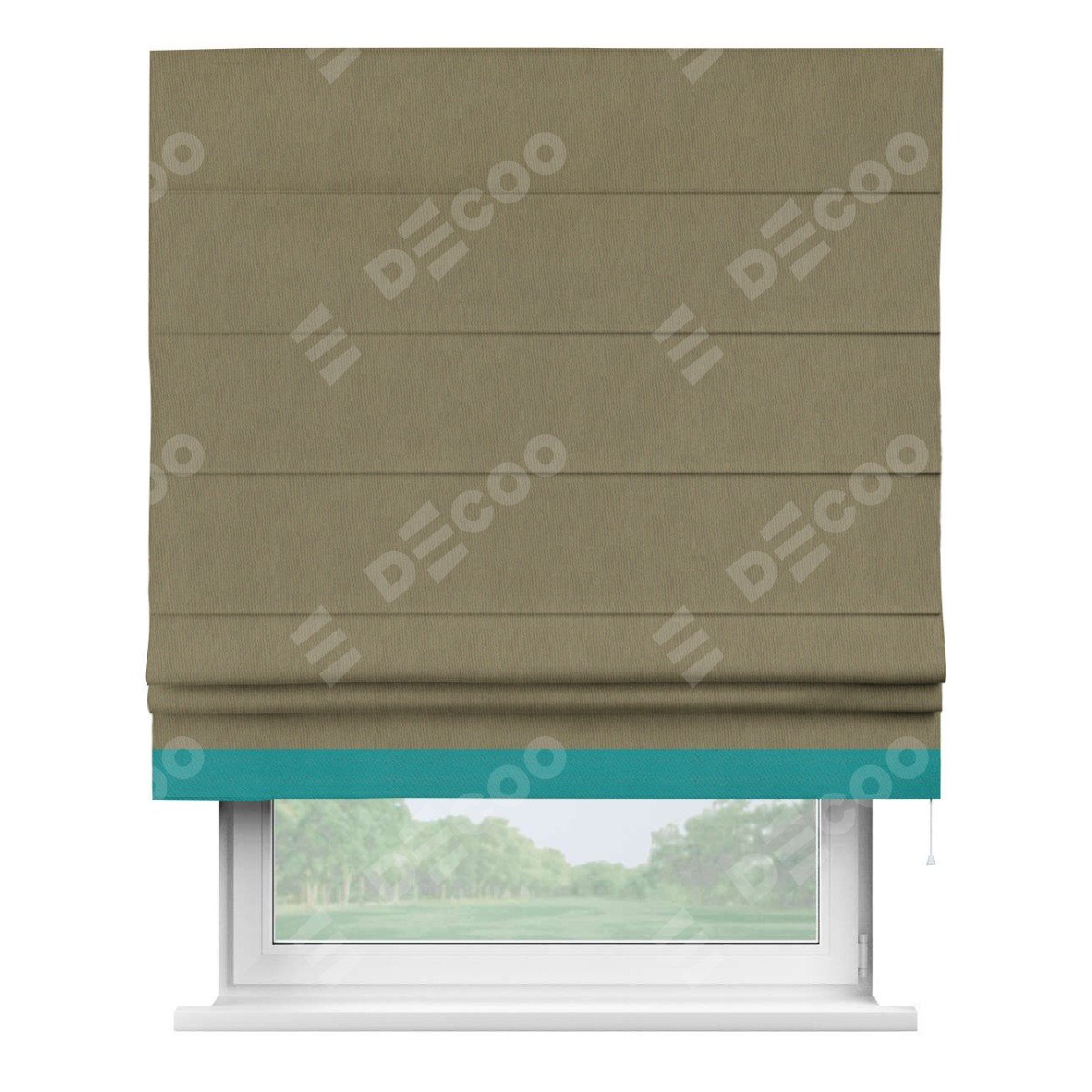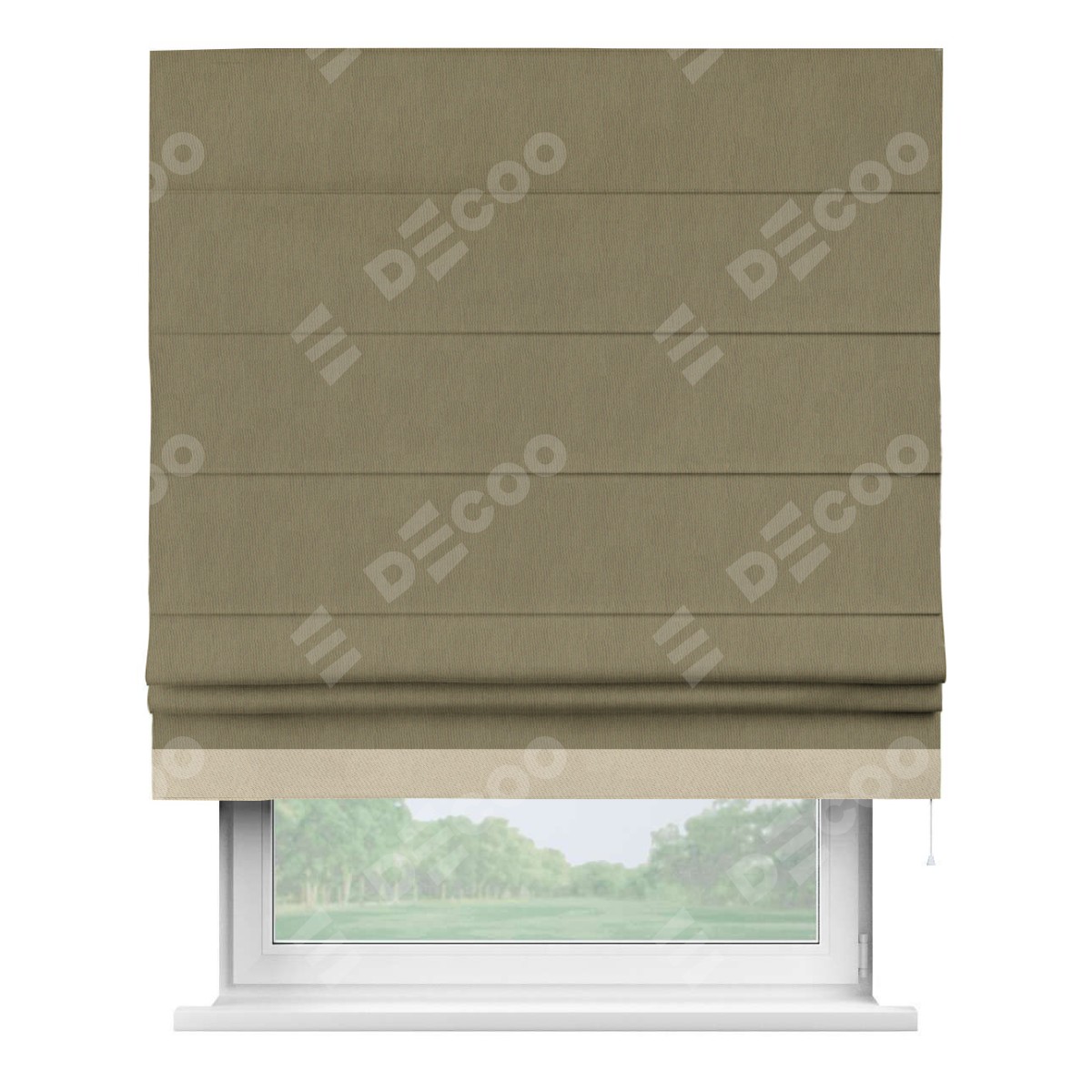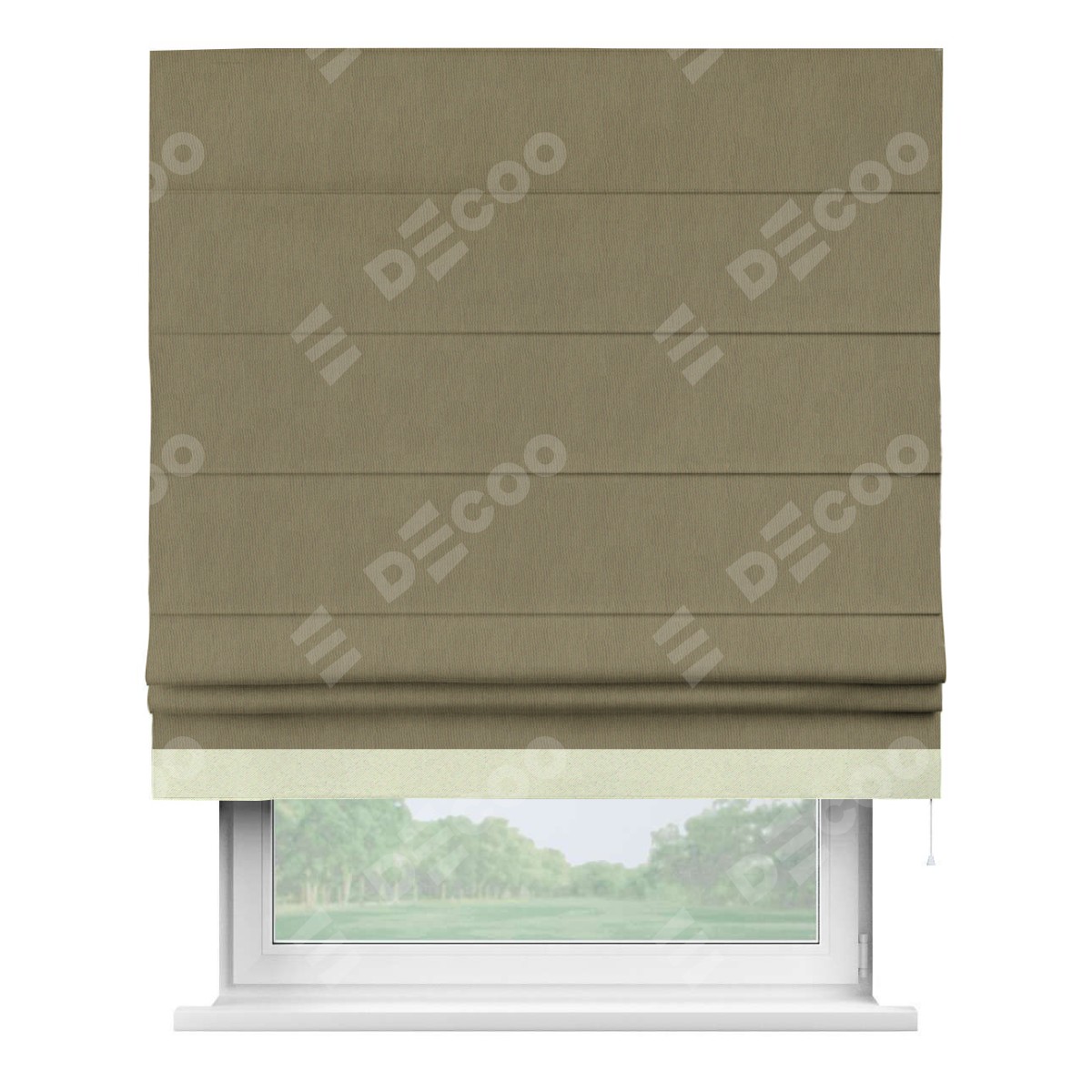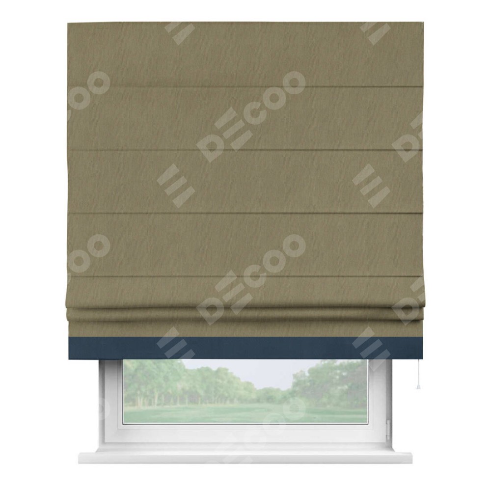 Римская штора производителя «Cortin», используется для проёма, пошита из ткани блэкаут однотонный бежево-золотой, артикул ткани 12095−2. Отделка шторы кантом «Джестер», ткань для канта используется из блэкаута однотонного разной расцветки на выбор. Имеет универсальный механизм и подходит для монтажа: на потолок, на стену и в нишу.