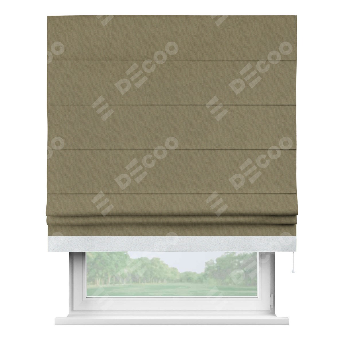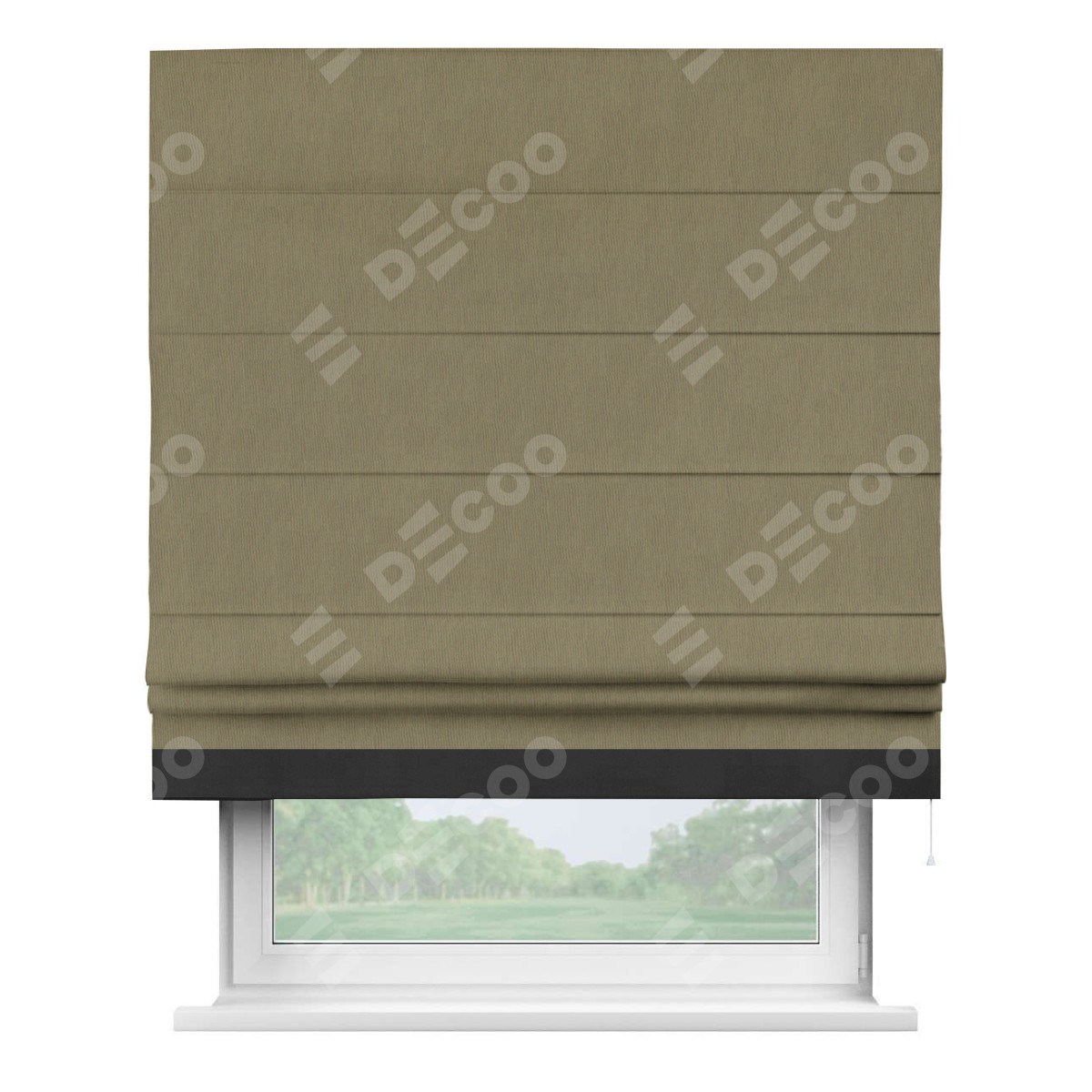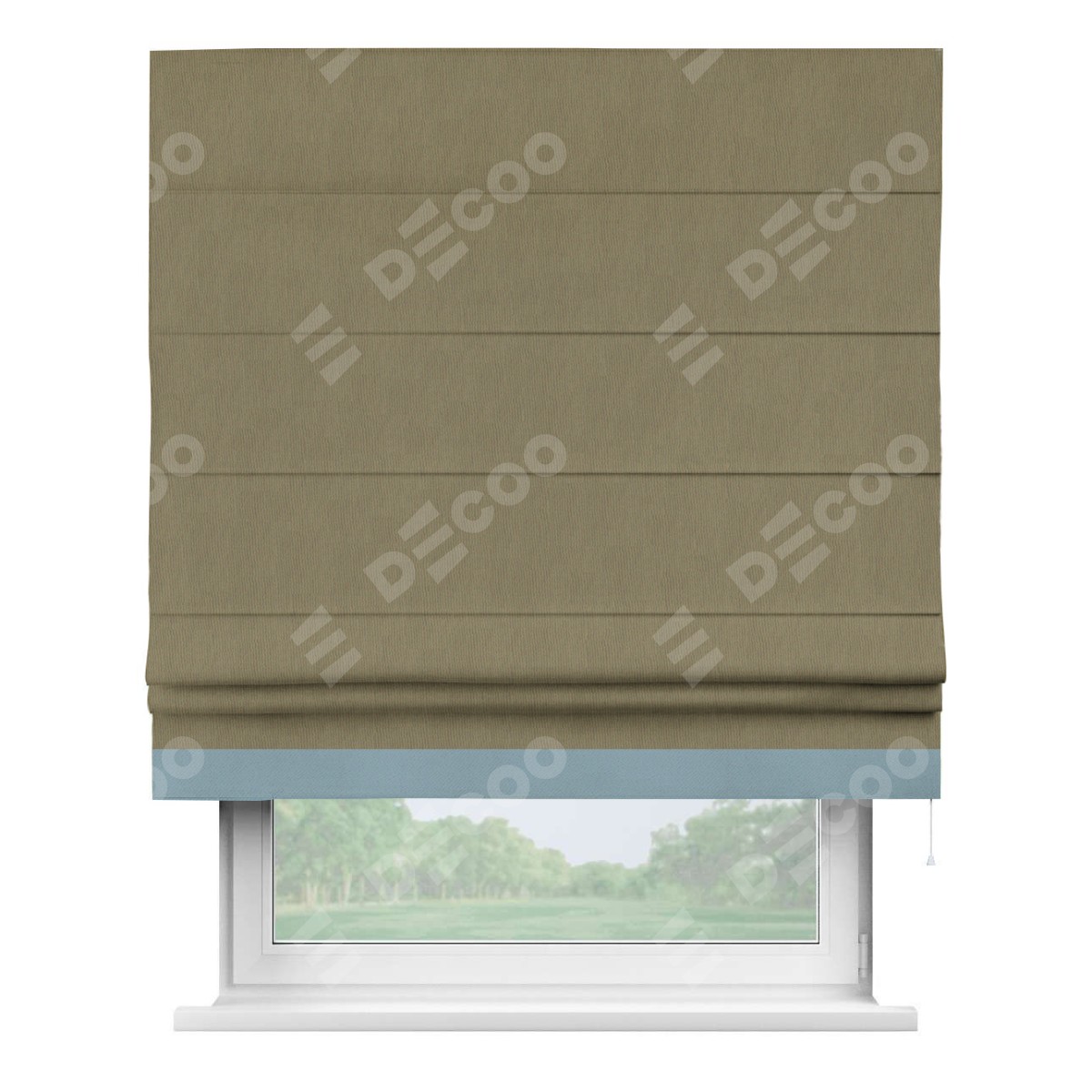 Римская штора производителя «Cortin», используется для проёма, пошита из ткани блэкаут однотонный бежево-золотой, артикул ткани 12095−2. Отделка шторы кантом «Джестер», ткань для канта используется из блэкаута однотонного разной расцветки на выбор. Имеет универсальный механизм и подходит для монтажа: на потолок, на стену и в нишу.