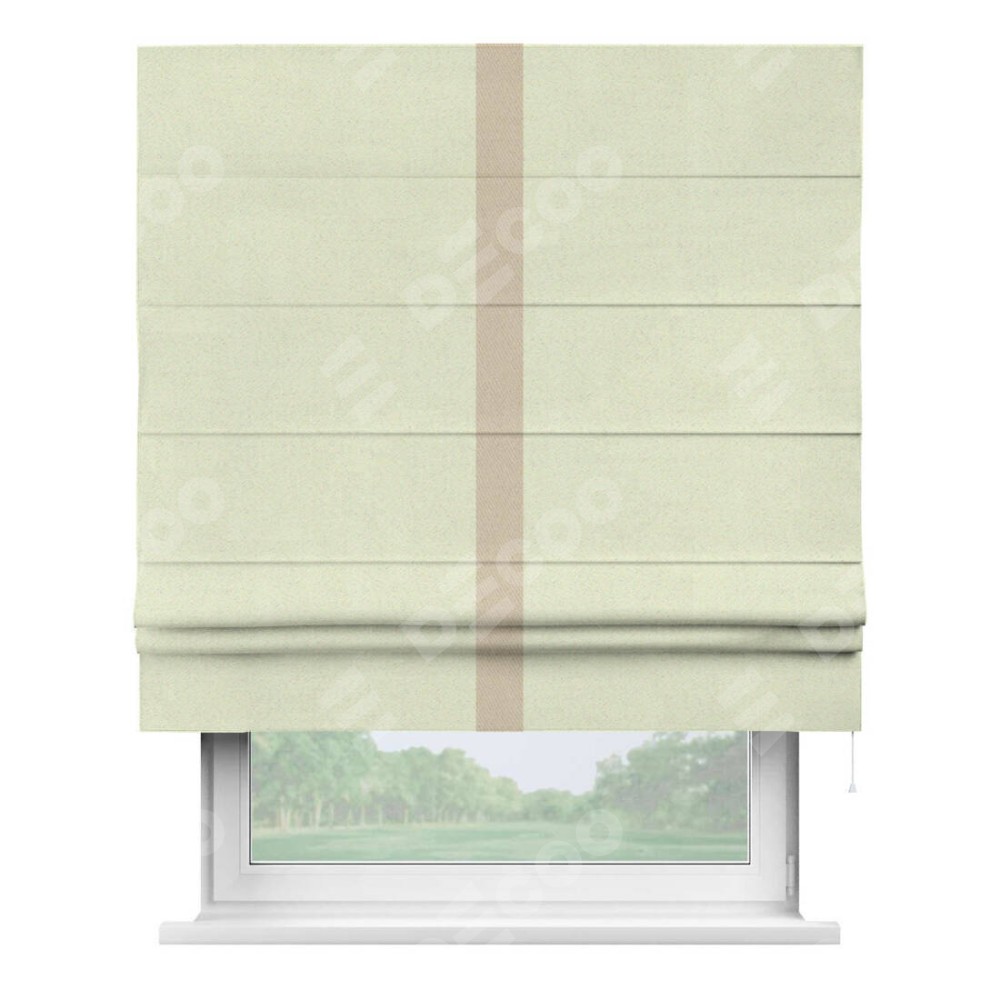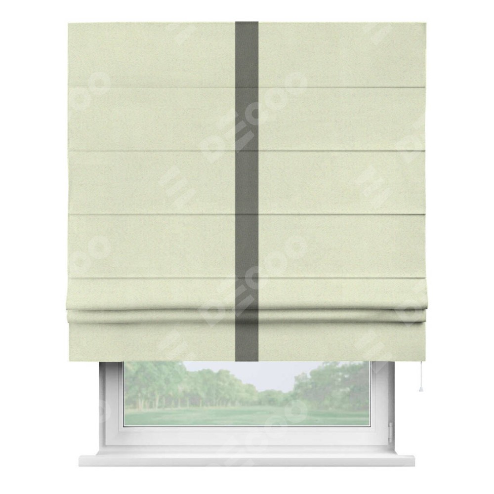 Римская штора производителя «Cortin», используется для проёма, пошита из ткани блэкаут однотонный сливочный, артикул ткани 6668−02. Отделка шторы кантом «Хайвей», ткань для канта используется из блэкаута однотонного разной расцветки на выбор. Имеет универсальный механизм и подходит для монтажа: на потолок, на стену и в нишу.