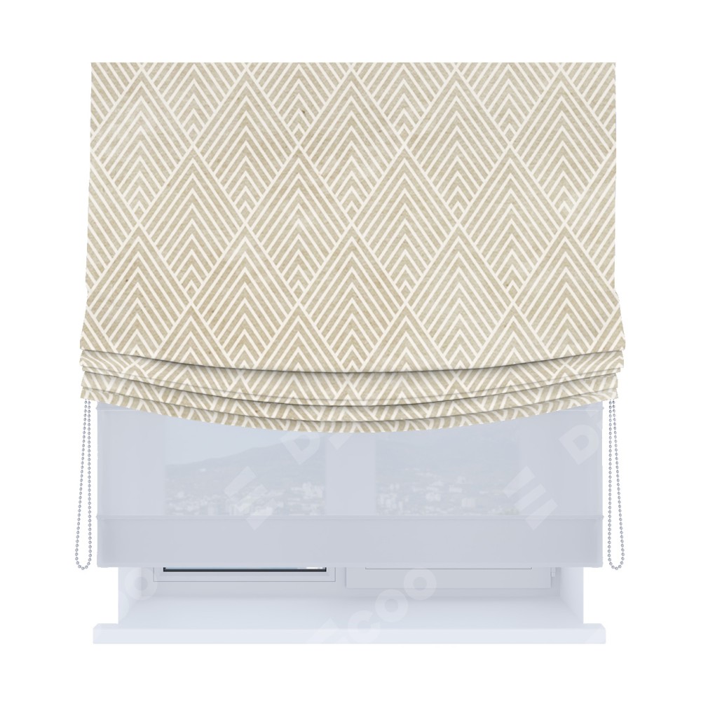 Основная ткань римской шторы не имеет горизонтальных вставок и нижнего отвеса. Это позволяет ткани произвольно драпироваться в свободные мягкие складки.