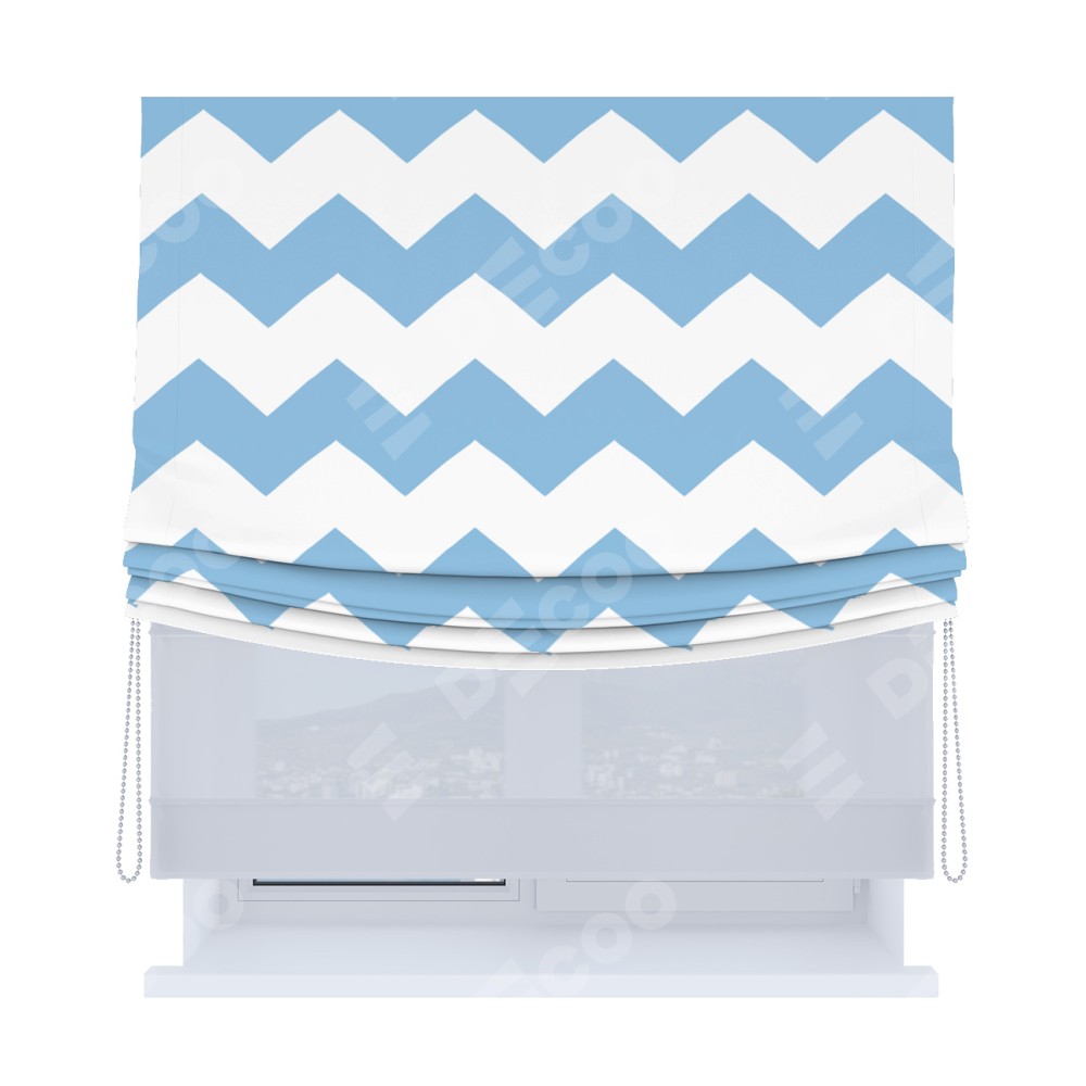 Римская штора день-ночь производителя «Cortin», используется для проёма, пошита из двух полотен, с лицевой блэкаут с нанесением сублимационной печати «Зигзаг крупный», вторая ткань тюль (по стандарту комплектуется тюль белого цвета артикул V-01). Имеет универсальный механизм и подходит для монтажа: на потолок, на стену и в нишу. Удобное управление каждой шторой отдельно.