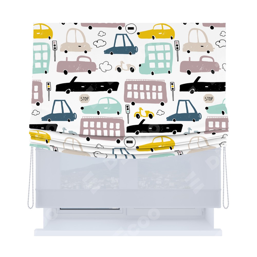 Римская штора «Кортин», день-ночь с мягкими складками, «Красочный трафик»