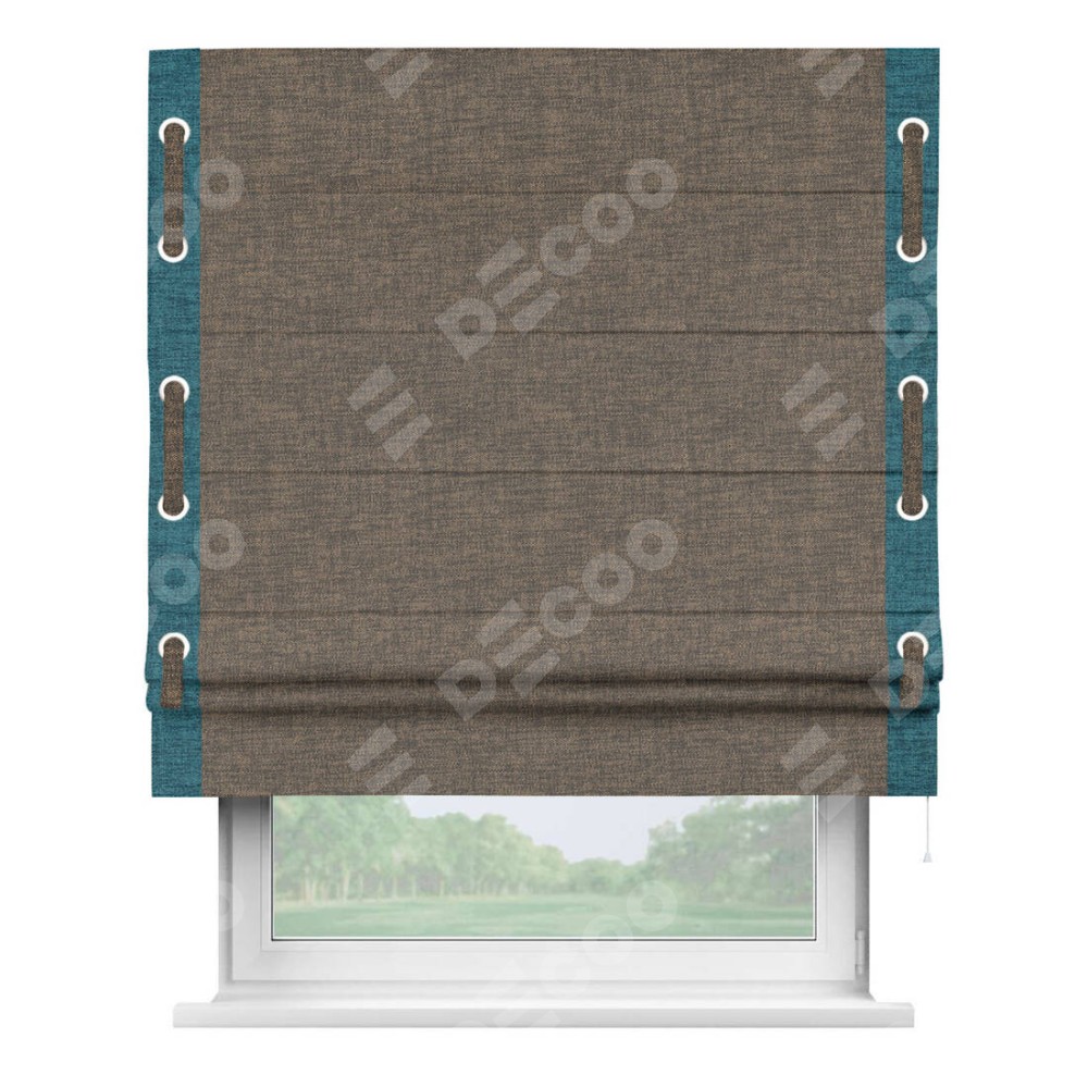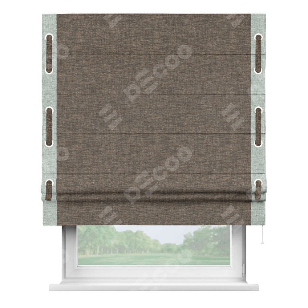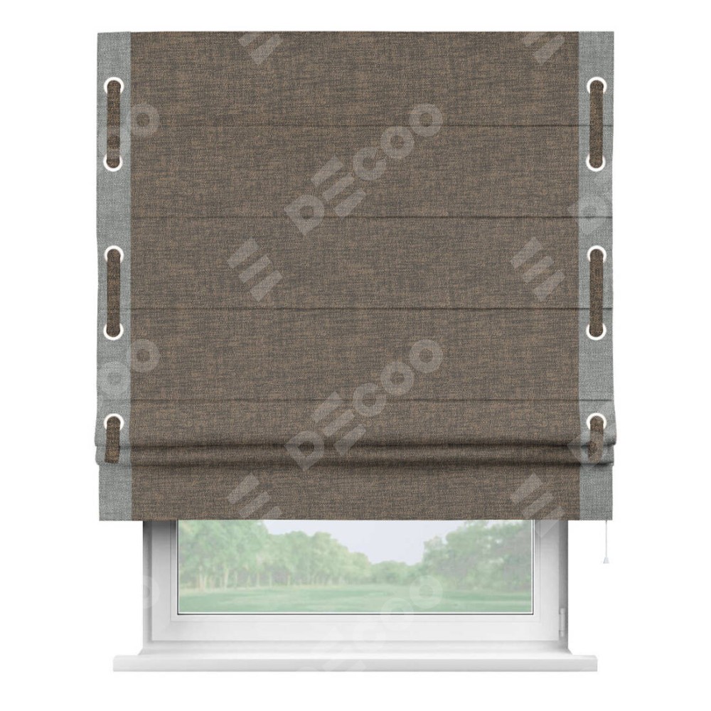 Римская штора «Кортин» с кантом Стрим Дуо (люверсы с пояском), для проема, ткань рогожка димаут, коричневый