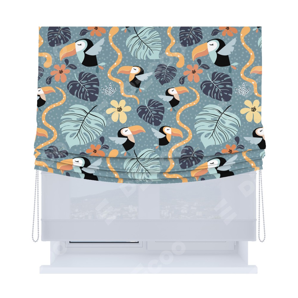 Римская штора «Кортин», день-ночь с мягкими складками, «Экзотические птицы»