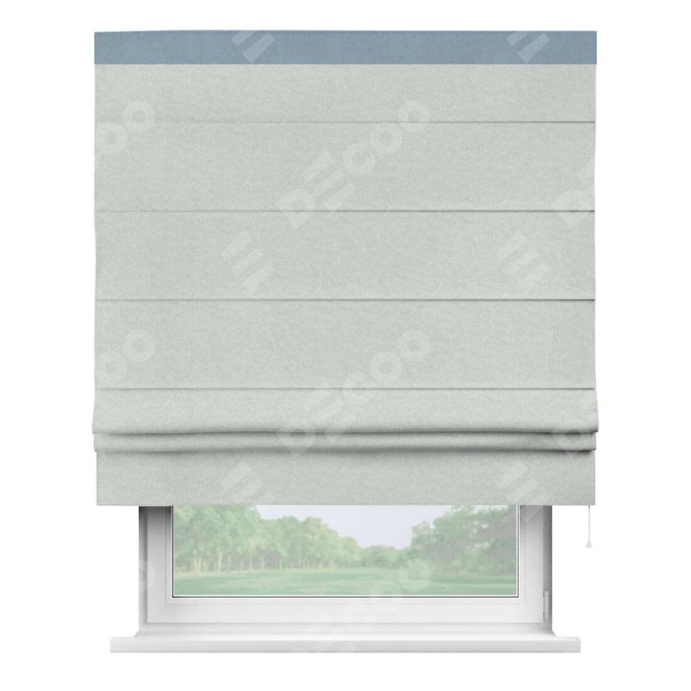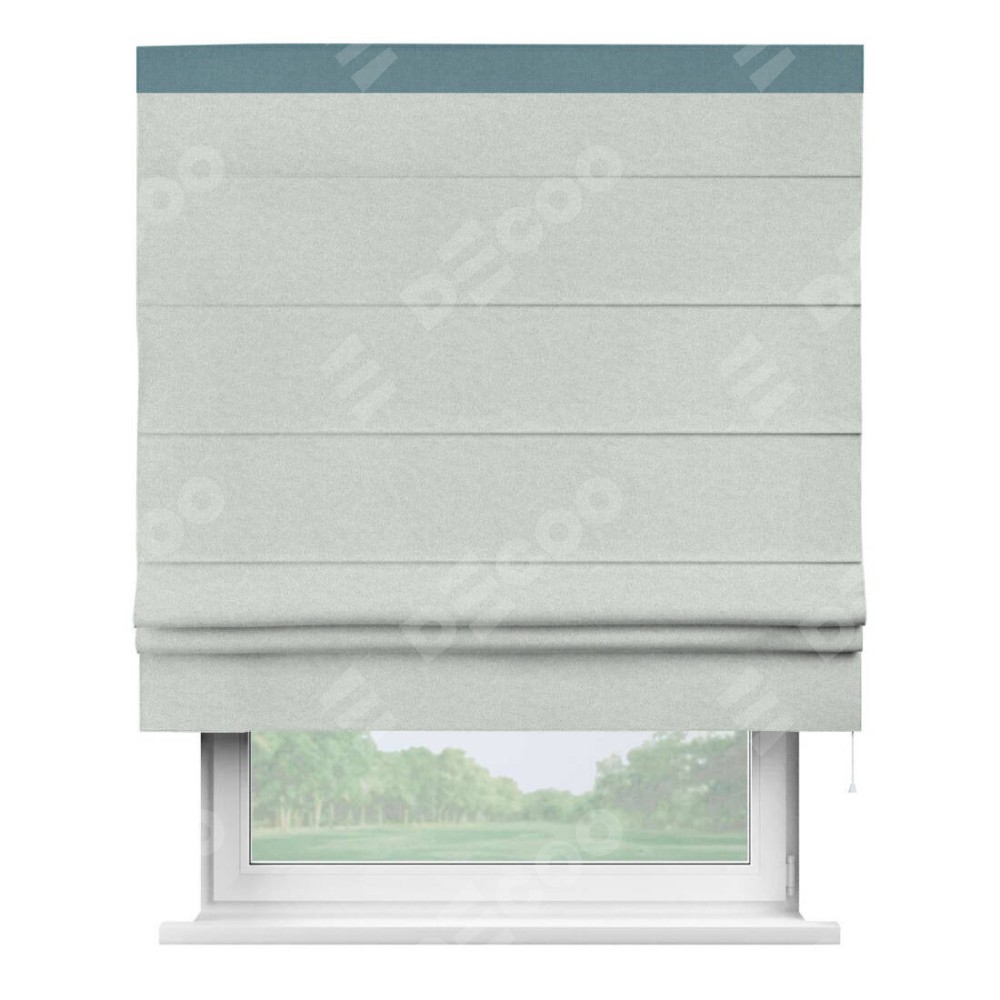 Римская штора производителя «Cortin», используется для проёма, пошита из ткани лён блэкаут белый, артикул 69451. Отделка шторы кантом «Кинг», ткань для канта используется из льна разной расцветки на выбор. Имеет универсальный механизм и подходит для монтажа: на потолок, на стену и в нишу.