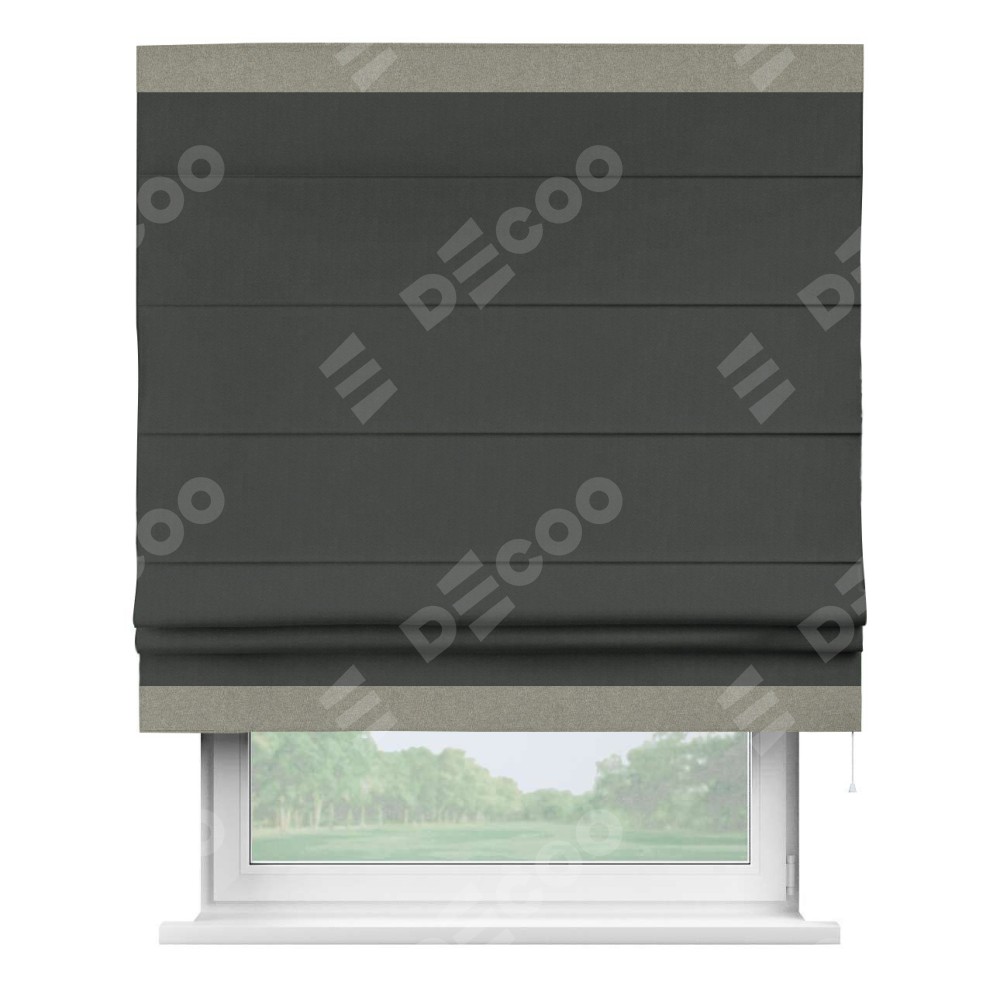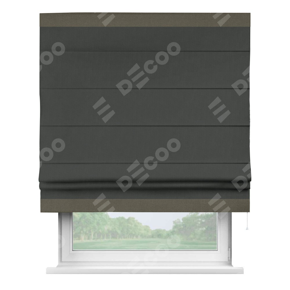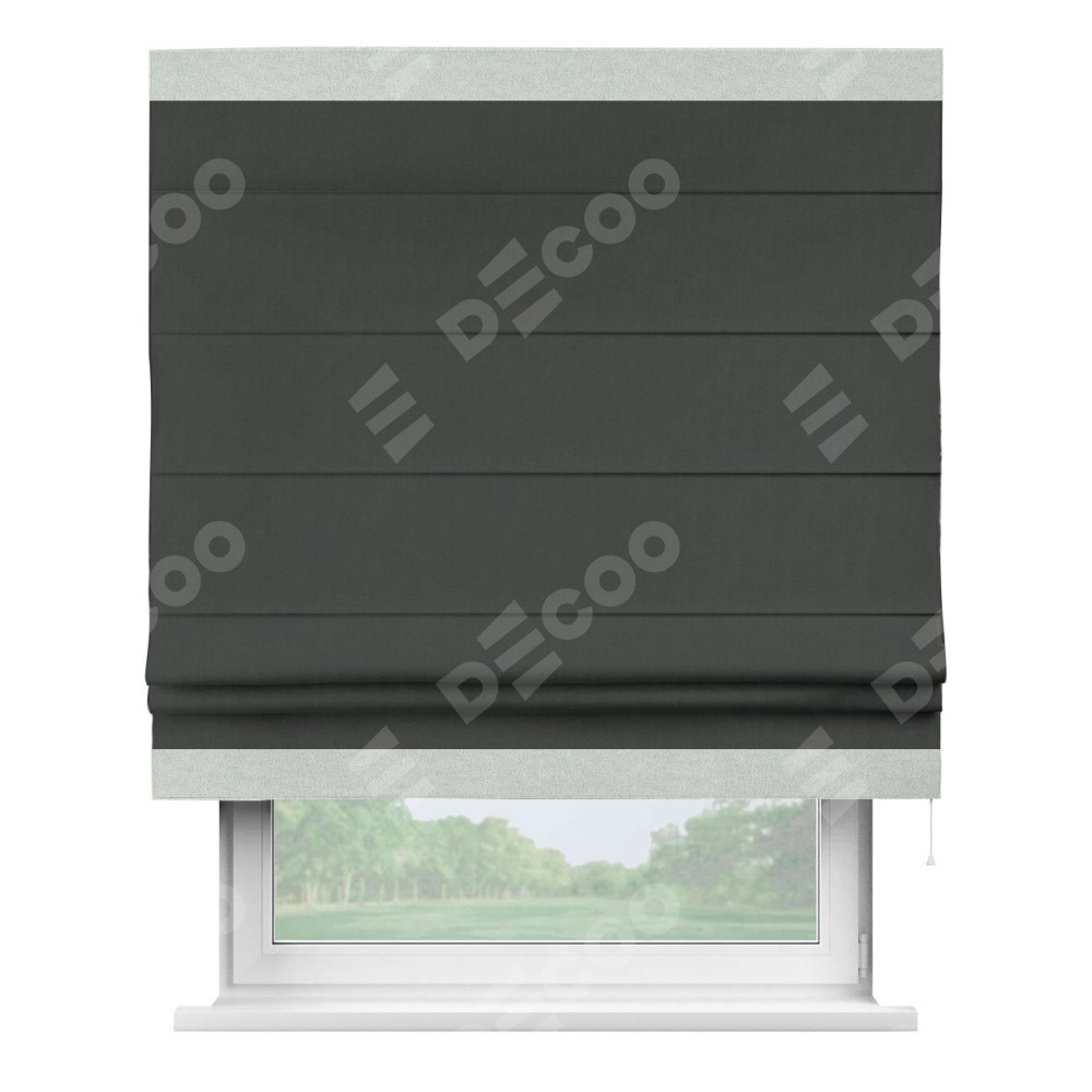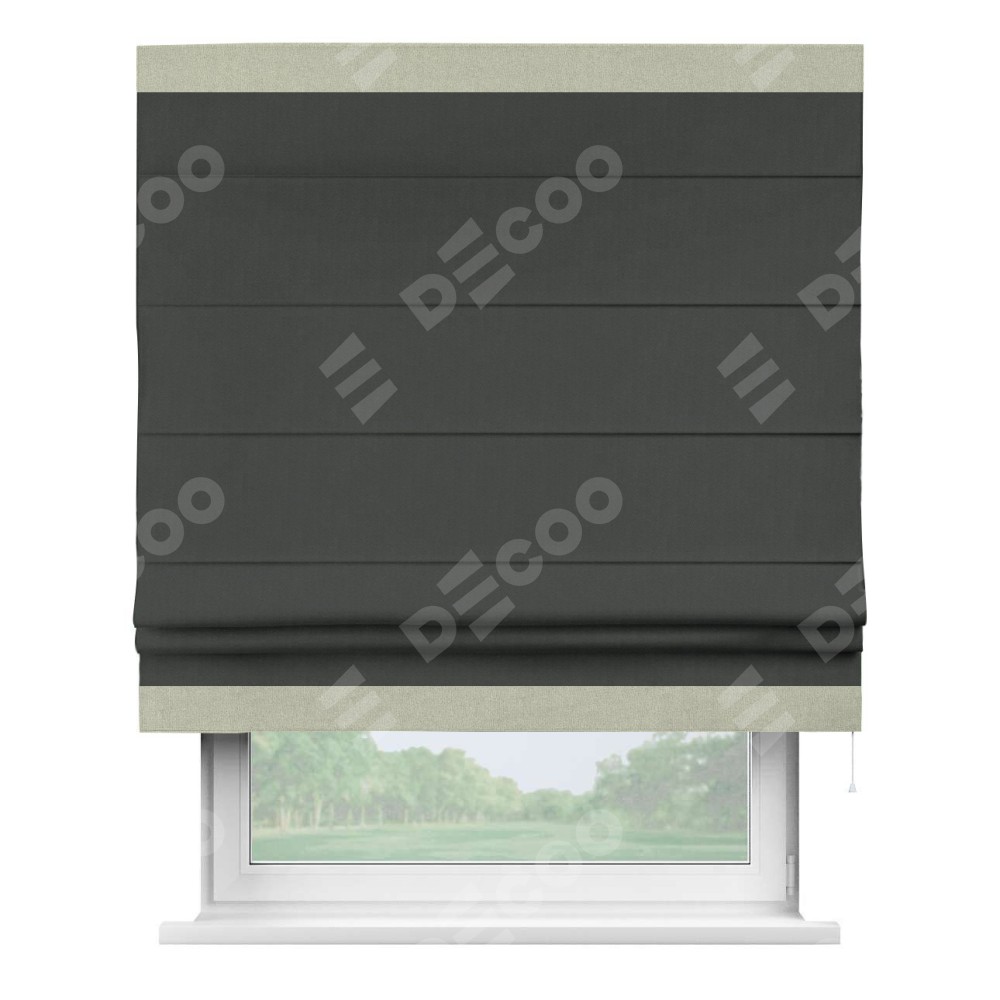 Римская штора «Кортин» с кантом Горизонт, для проема, лён блэкаут графит