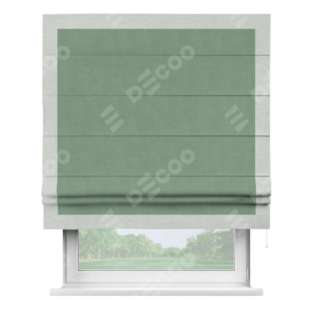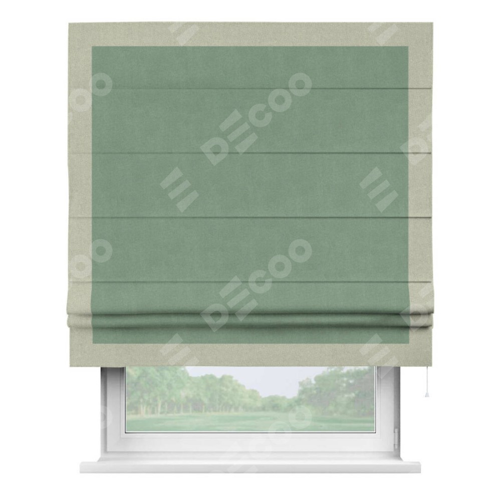 Римская штора «Кортин» с кантом Чесс, для проема, лён блэкаут светло-бирюзовый