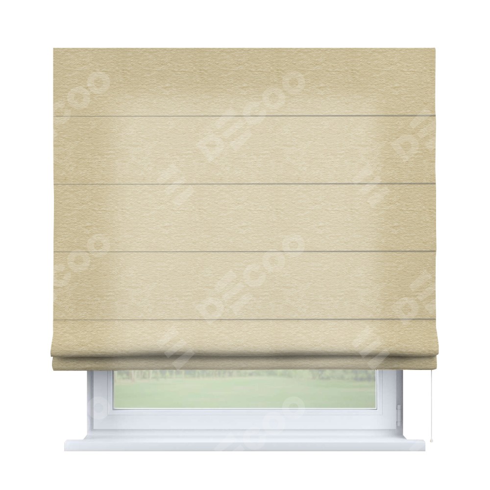 Римская штора производителя «Cortin», используется для проёма, пошита из ткани софт однотонный светло-бежевый, артикул ткани 54426. Имеет универсальный механизм и подходит для монтажа: на потолок, на стену и в нишу.