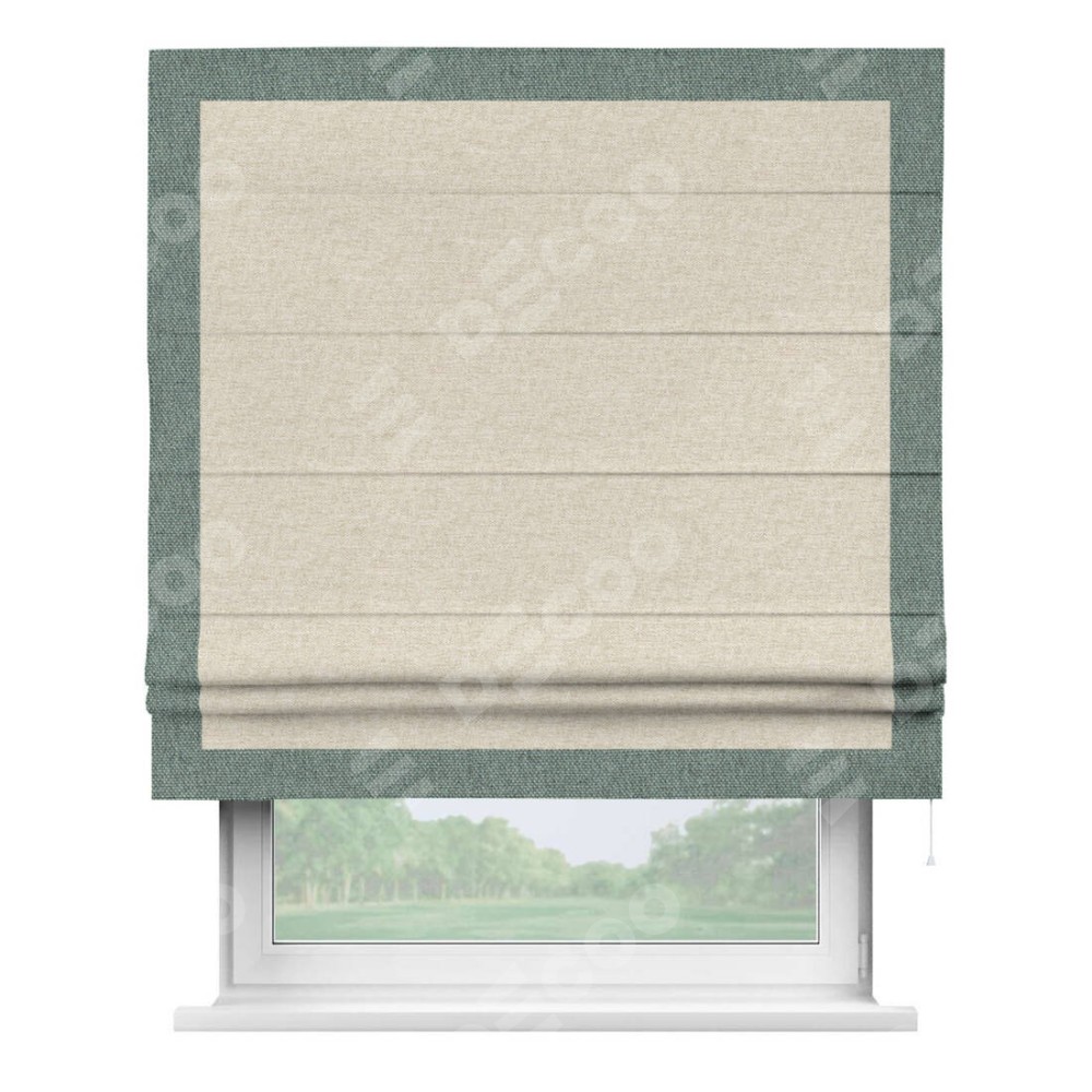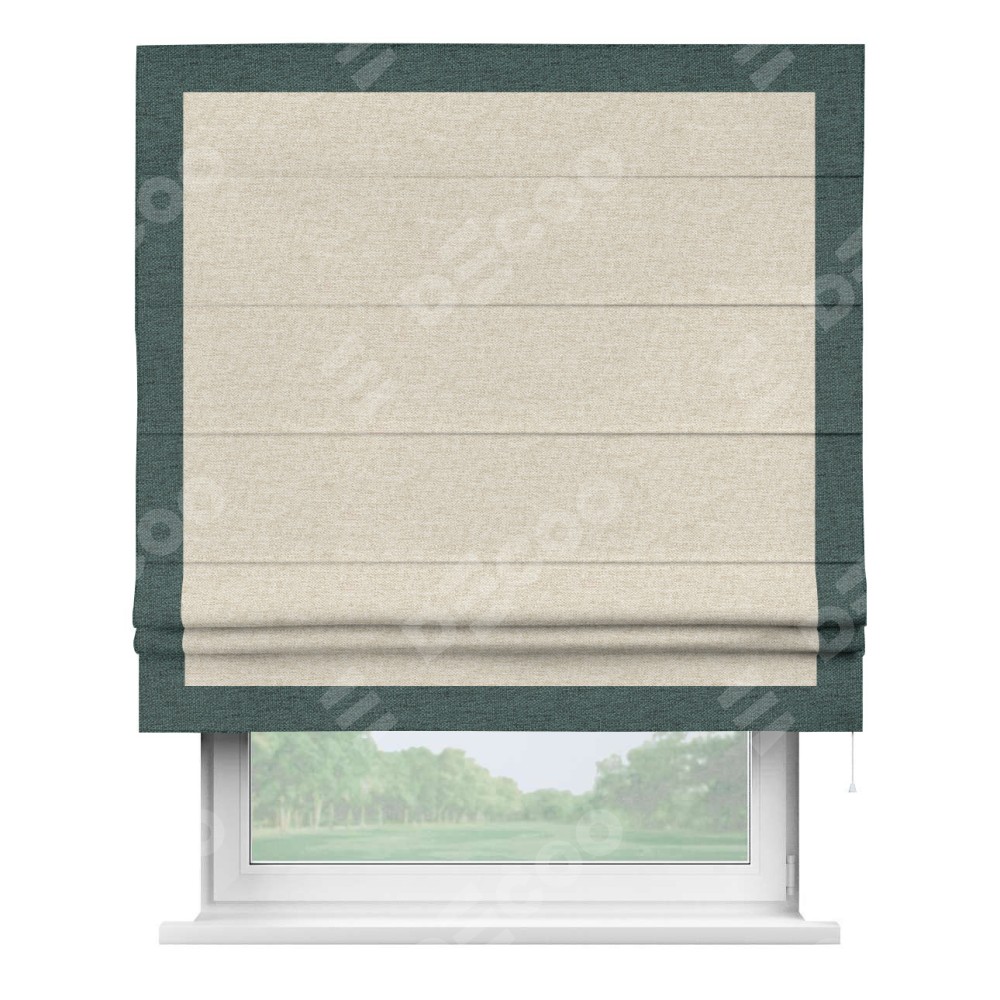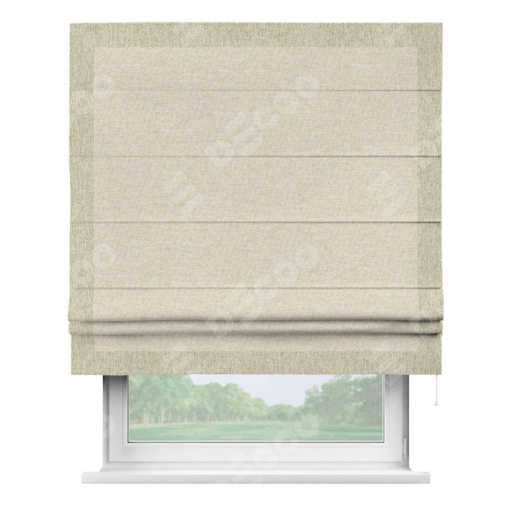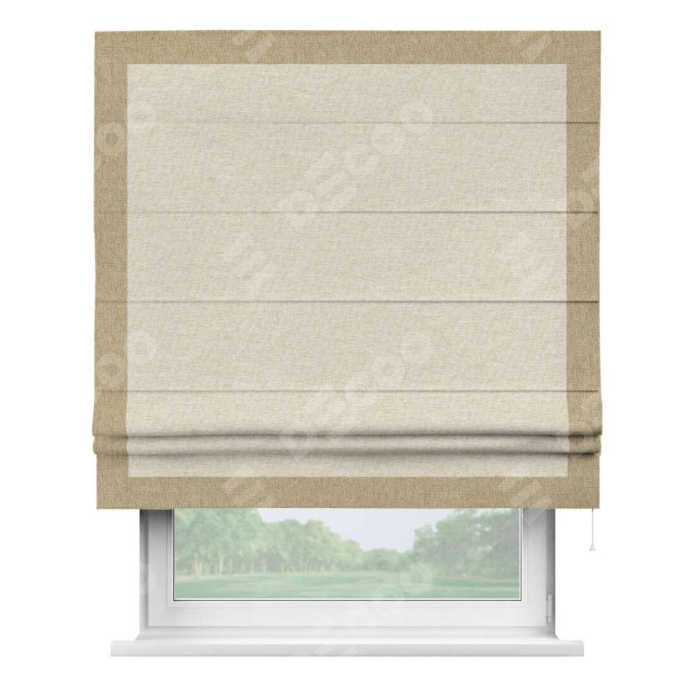 Римская штора производителя «Cortin», используется для проёма, пошита из ткани стиф димаут молочный, артикул 18082. Отделка шторы кантом «Чесс», ткань для канта используется из стифа разной расцветки на выбор. Имеет универсальный механизм и подходит для монтажа: на потолок, на стену и в нишу.