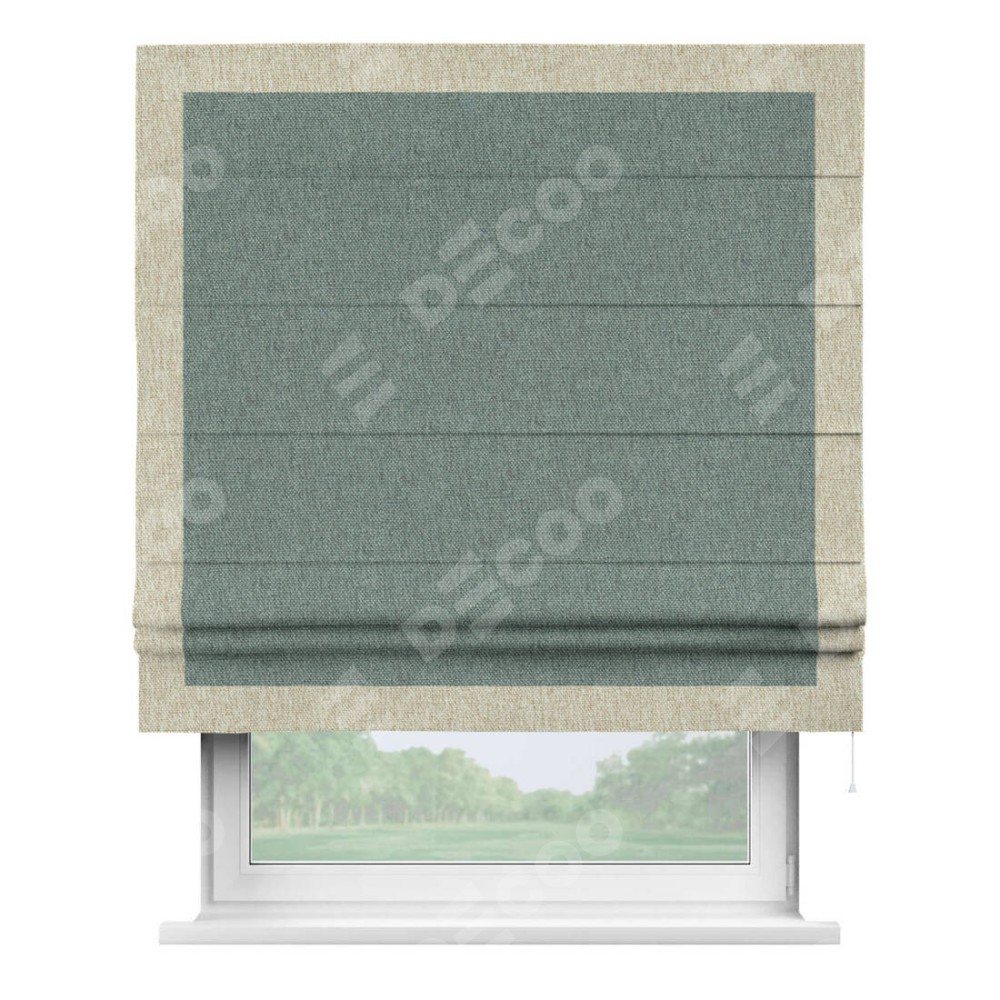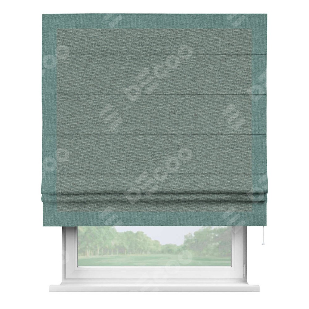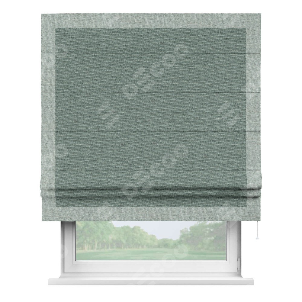 Римская штора производителя «Cortin», используется для проёма, пошита из ткани стиф димаут серо-голубой, артикул 44029. Отделка шторы кантом «Чесс», ткань для канта используется из стифа разной расцветки на выбор. Имеет универсальный механизм и подходит для монтажа: на потолок, на стену и в нишу.