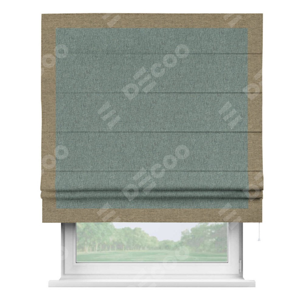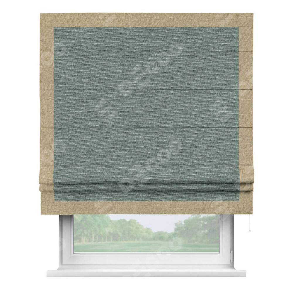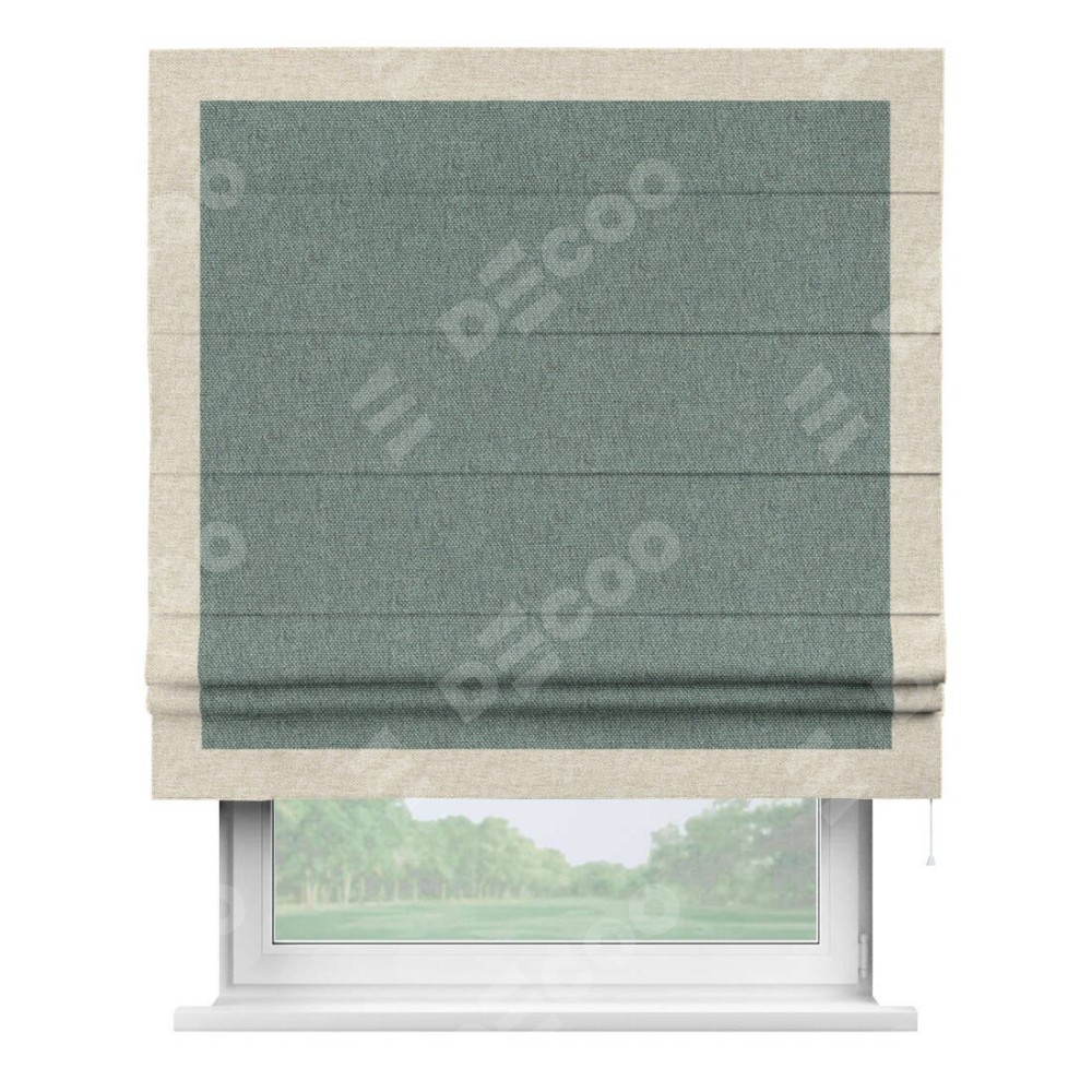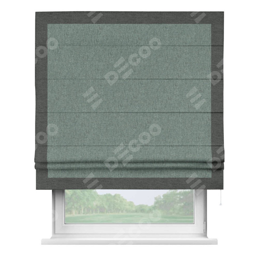 Римская штора производителя «Cortin», используется для проёма, пошита из ткани стиф димаут серо-голубой, артикул 44029. Отделка шторы кантом «Чесс», ткань для канта используется из стифа разной расцветки на выбор. Имеет универсальный механизм и подходит для монтажа: на потолок, на стену и в нишу.