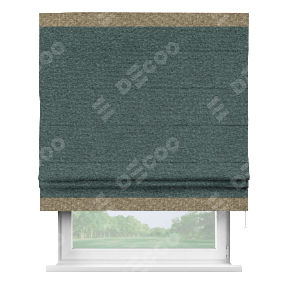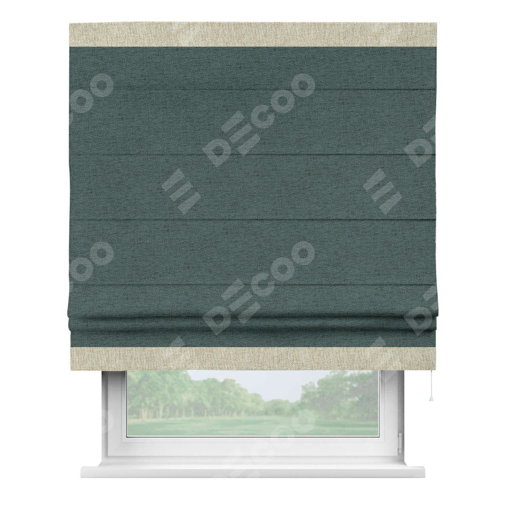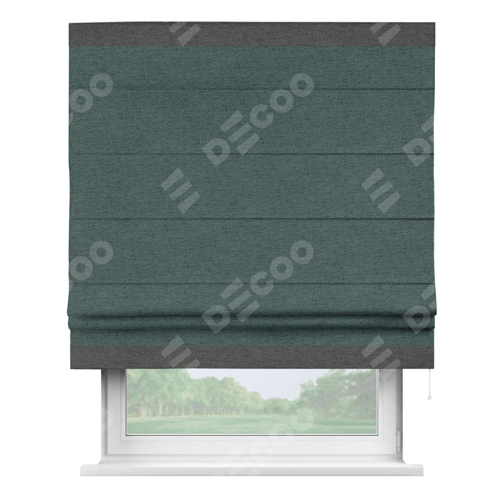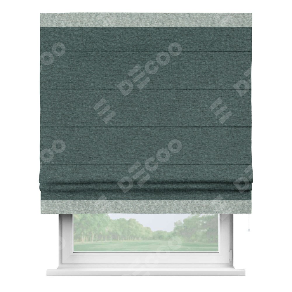Римская штора «Кортин» с кантом Горизонт, для проема, ткань стиф димаут сине-зелёный