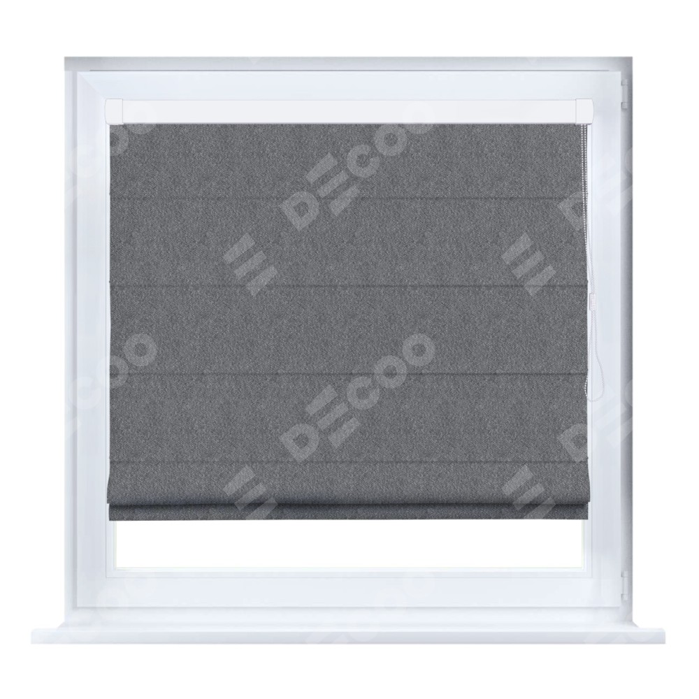Римская штора кассетного типа, производителя «Cortin», устанавливается только на пластиковые окна и прилегает к стеклопакету, пошита из ткани софт однотонный серый, артикул 70605.
