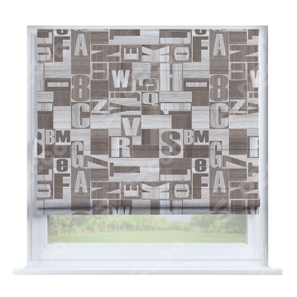 Римская штора производителя «Cortin», устанавливается на створку окна, пошита из ткани блэкаут с нанесением сублимационной печати «Литеры лофт». Штора шьётся по индивидуальным размерам, для данного типа римской шторы возможная ширина от 35 до 150 см., высота до 250 см.