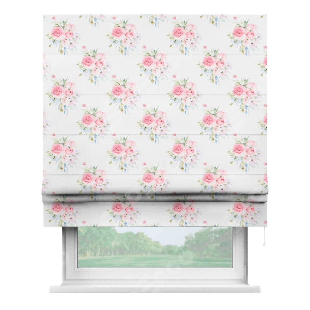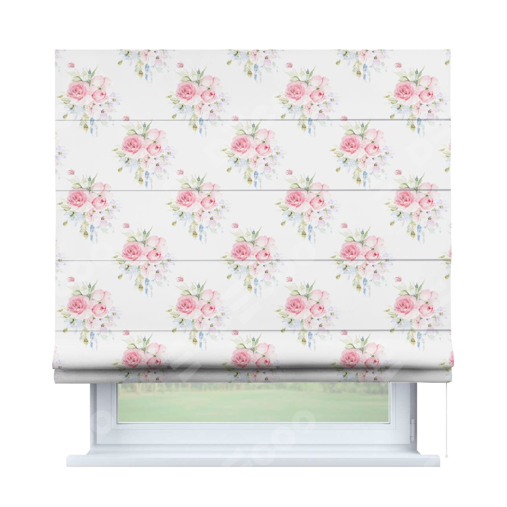 Римская штора производителя «Cortin», используется для проёма, пошита из ткани блэкаут с нанесением сублимационной печати «Нежный розарий». Имеет универсальный механизм и подходит для монтажа: на потолок, на стену и в нишу.