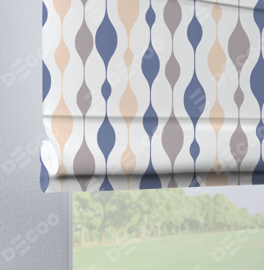 Классическая римская штора представляет собой полотно прикрепленное к карнизу, с обратной стороны полотна вшиты планки. С их помощь при сборе шторы образуются красивые горизонтальные складки.