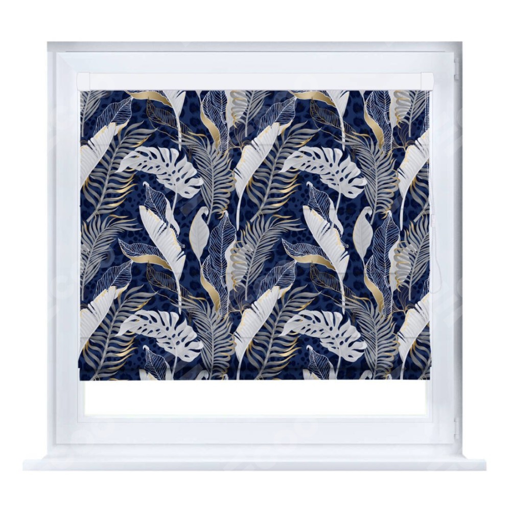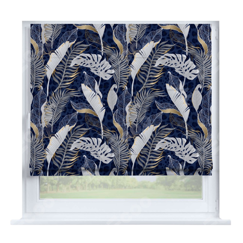 Римская штора «Кортин» на створку «Сине-золотые джунгли»