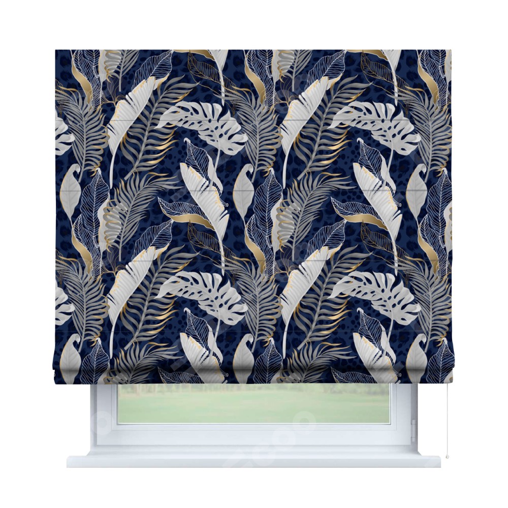 Римская штора «Кортин» для проема «Сине-золотые джунгли»