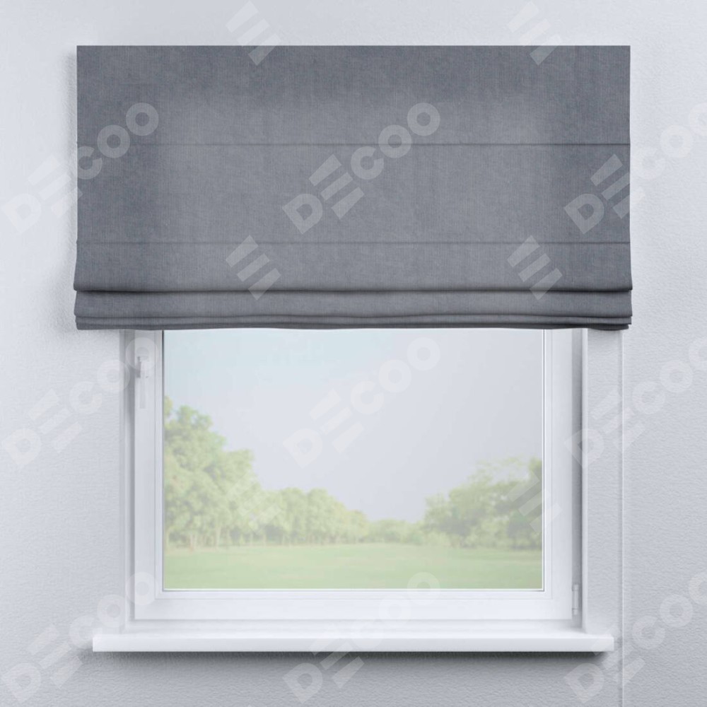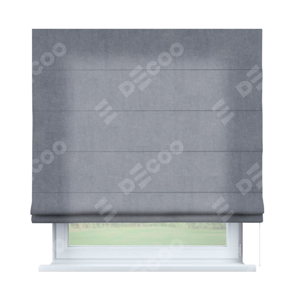 Римская штора производителя «Cortin», используется для проёма, пошита из ткани канвас васильковый, артикул ткани v-203. Имеет универсальный механизм и подходит для монтажа: на потолок, на стену и в нишу.