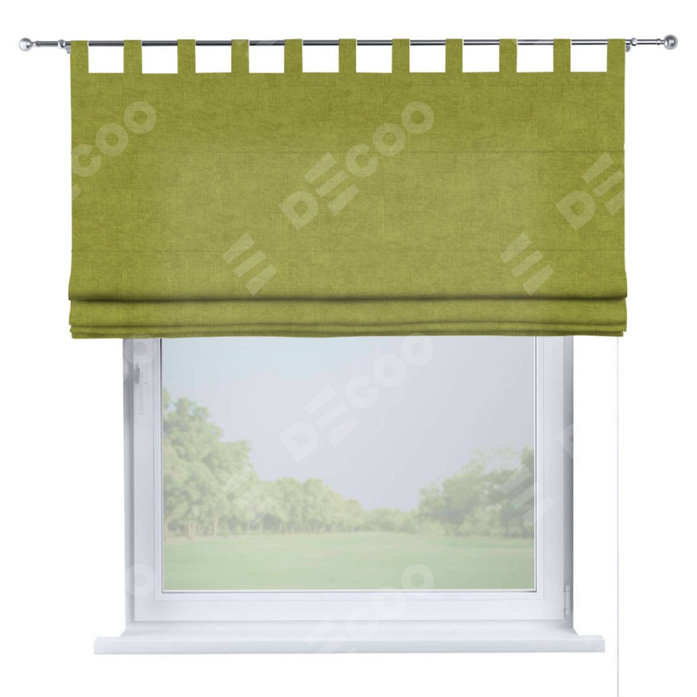 Римская штора производителя «Cortin», используется для проёма, пошита из ткани канвас зелёное яблоко, артикул ткани v-370. Данная модель пошита на петлях, комплектуется на выбор круглым карнизом и подходит для монтажа на стену. Римская штора на петлях имеет простую систему регулировки высоты, отличительным преимуществом данной модели является простой способ монтажа. Достаточно повесить ее на трубу и штора готова!
