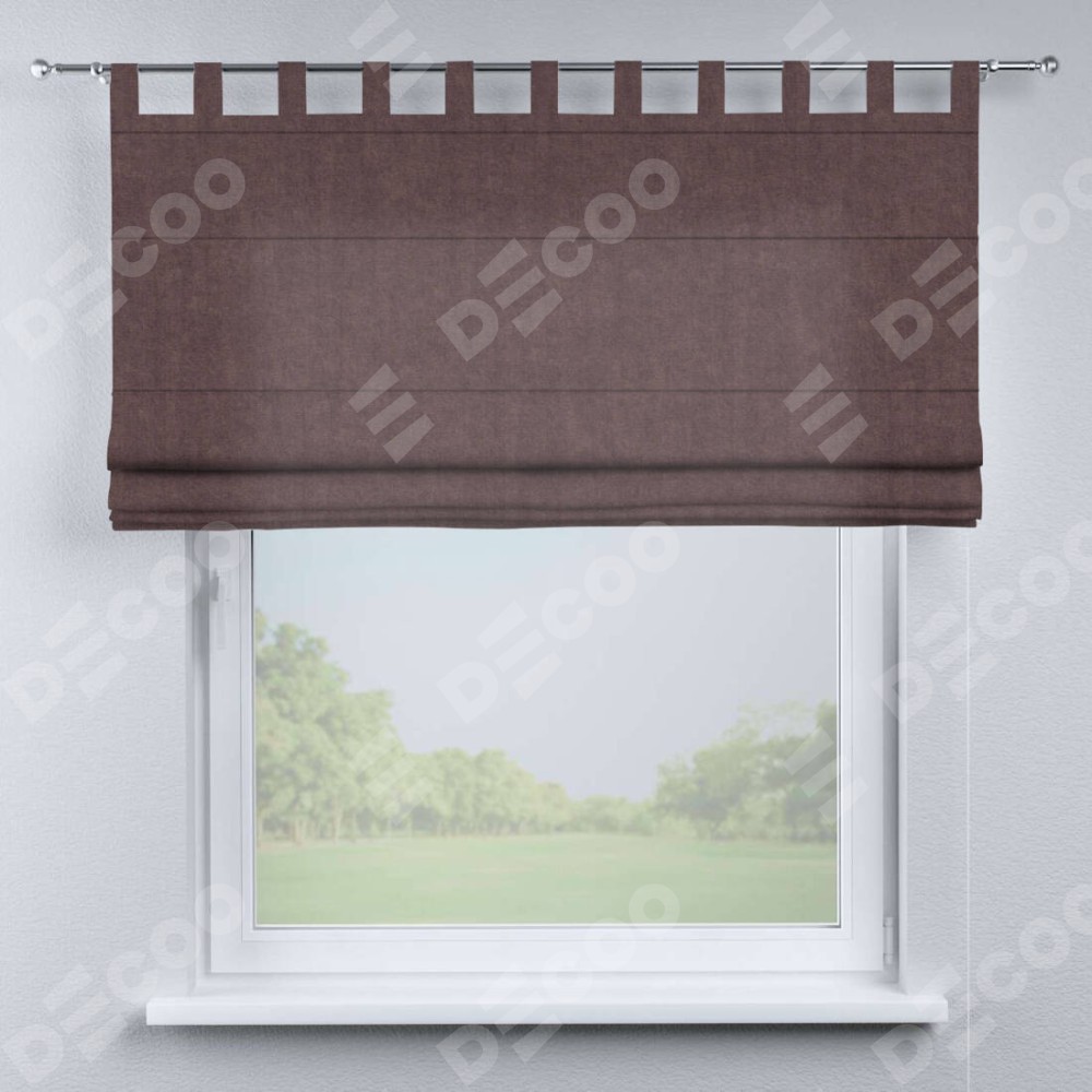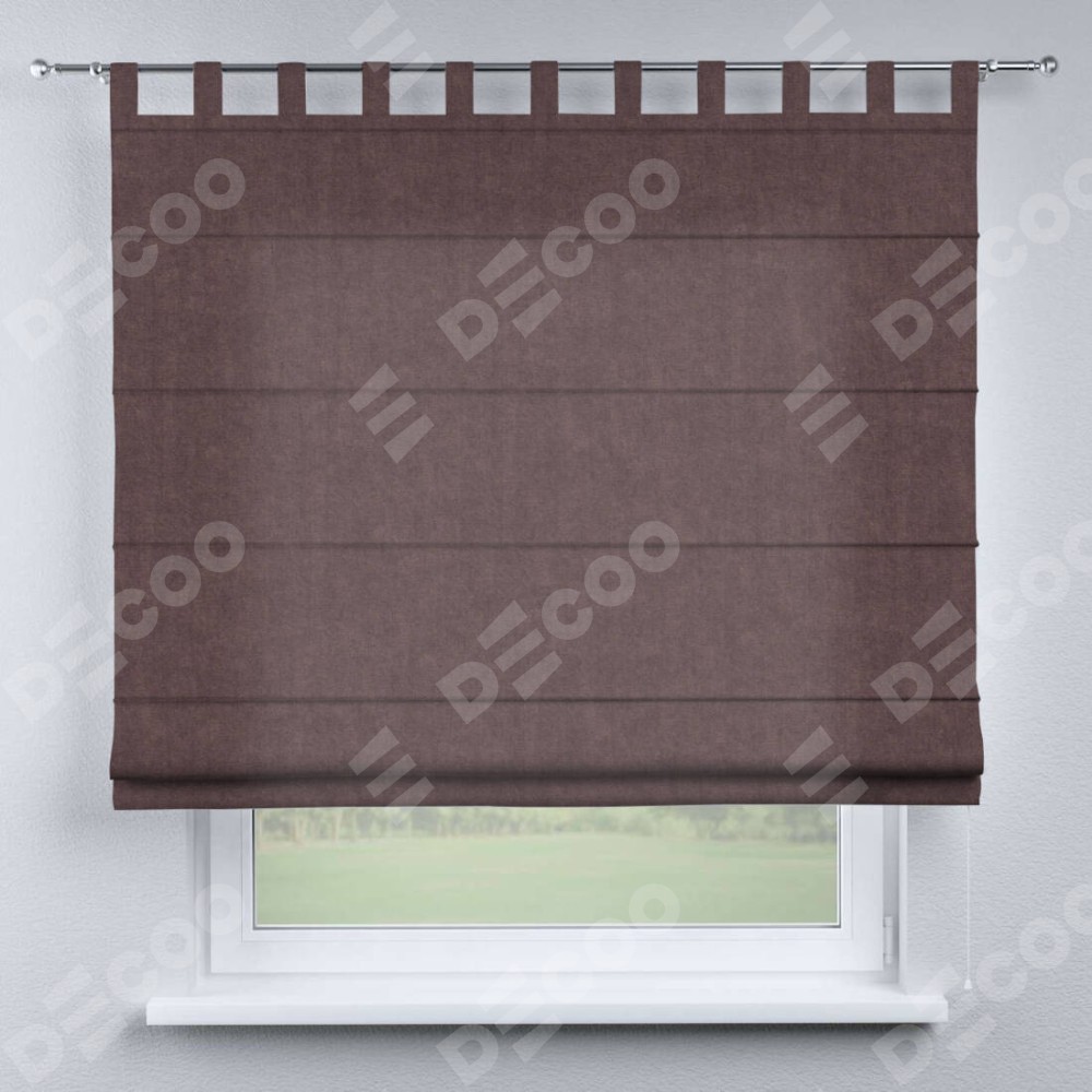 Римская штора производителя «Cortin», используется для проёма, пошита из ткани канвас махагон, артикул ткани v-37. Данная модель пошита на петлях, комплектуется на выбор круглым карнизом и подходит для монтажа на стену. Римская штора на петлях имеет простую систему регулировки высоты, отличительным преимуществом данной модели является простой способ монтажа. Достаточно повесить ее на трубу и штора готова!