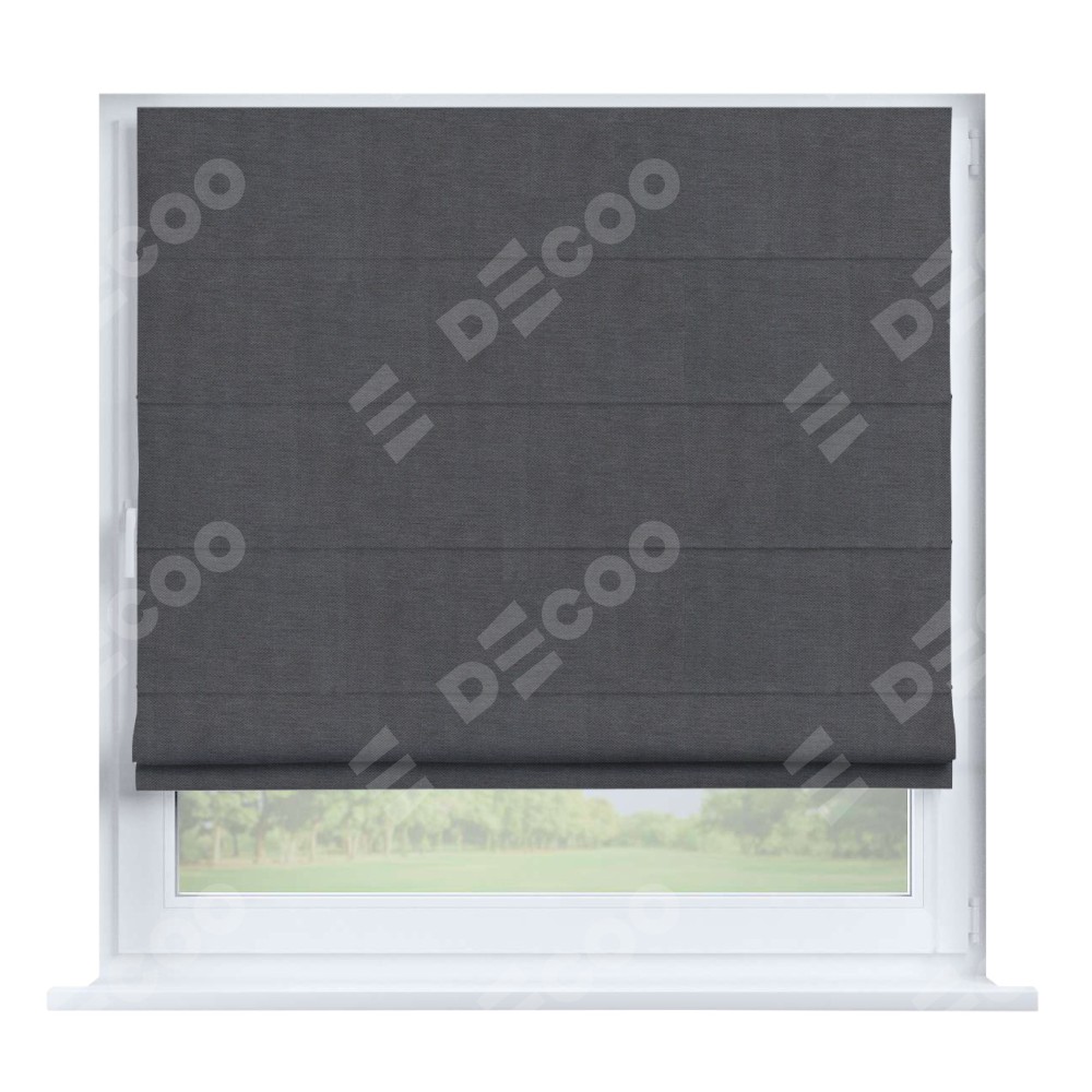 Римская штора производителя «Cortin», устанавливается на створку окна, пошита из ткани канвас мокрый асфальт, артикул v-1083. Штора шьётся по индивидуальным размерам, для данного типа римской шторы возможная ширина от 35 до 150 см., высота до 250 см.