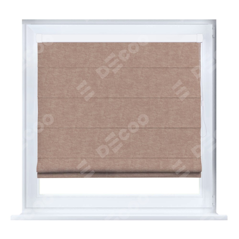Римская штора производителя «Cortin», устанавливается на створку окна, пошита из ткани канвас розовая пудра, артикул v-34. Штора шьётся по индивидуальным размерам, для данного типа римской шторы возможная ширина от 35 до 150 см., высота до 250 см.