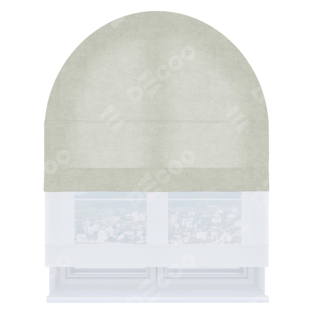 Римская штора день-ночь производителя «Cortin», используется для арочного проёма, пошита из двух полотен, с лицевой стороны канвас светло-серый артикул v-371, вторая ткань тюль (по стандарту комплектуется тюль белого цвета артикул V-01). Штора шьётся по индивидуальным размерам, для данного типа римской шторы возможная ширина от 60 до 300 см. Удобное управление каждой шторой отдельно.