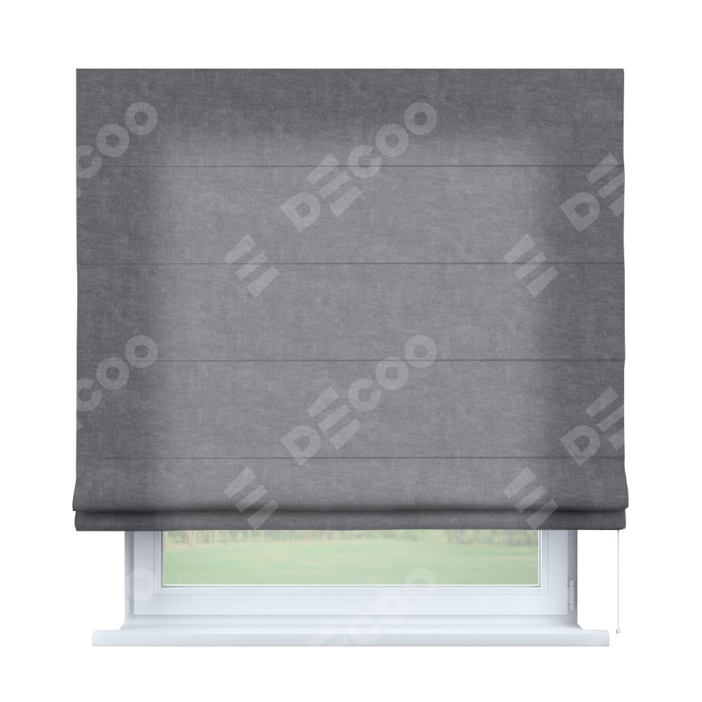 Римская штора производителя «Cortin», используется для проёма, пошита из ткани канвас стальной, артикул ткани v-1082. Имеет универсальный механизм и подходит для монтажа: на потолок, на стену и в нишу.